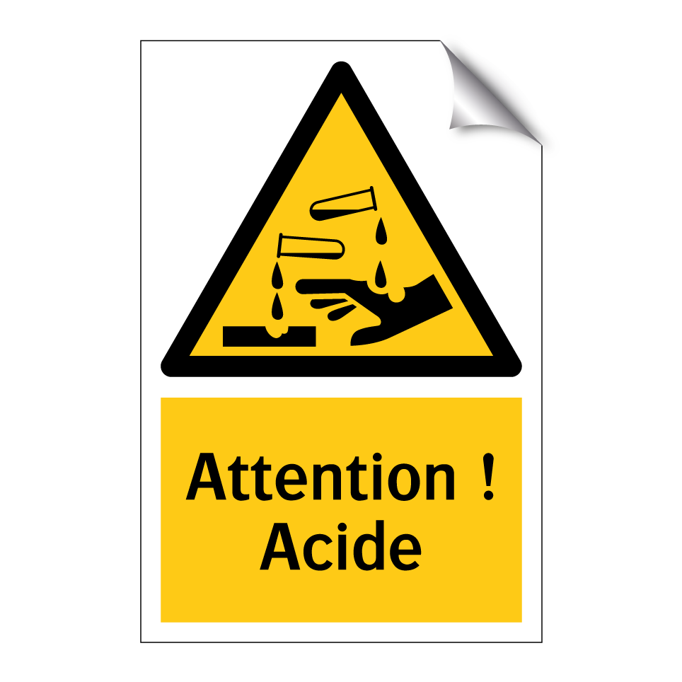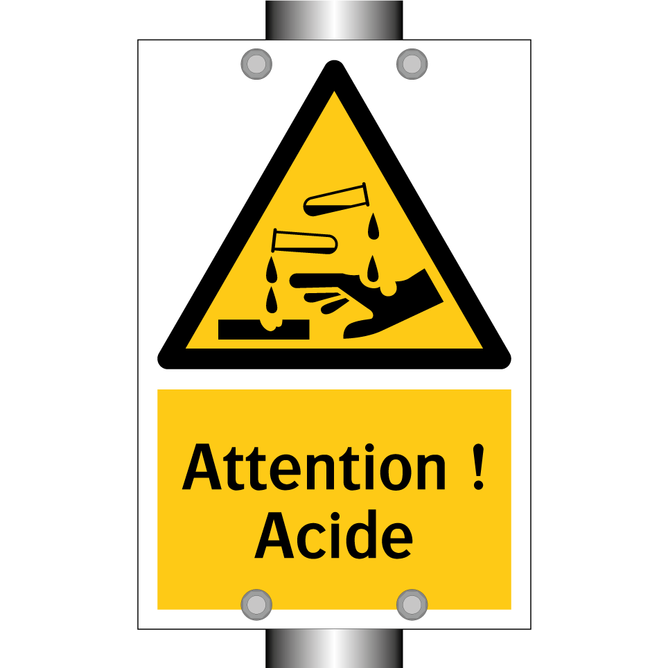 Panneau d'avertissement avec le texte : "Attention ! Acide"