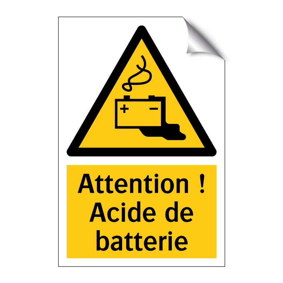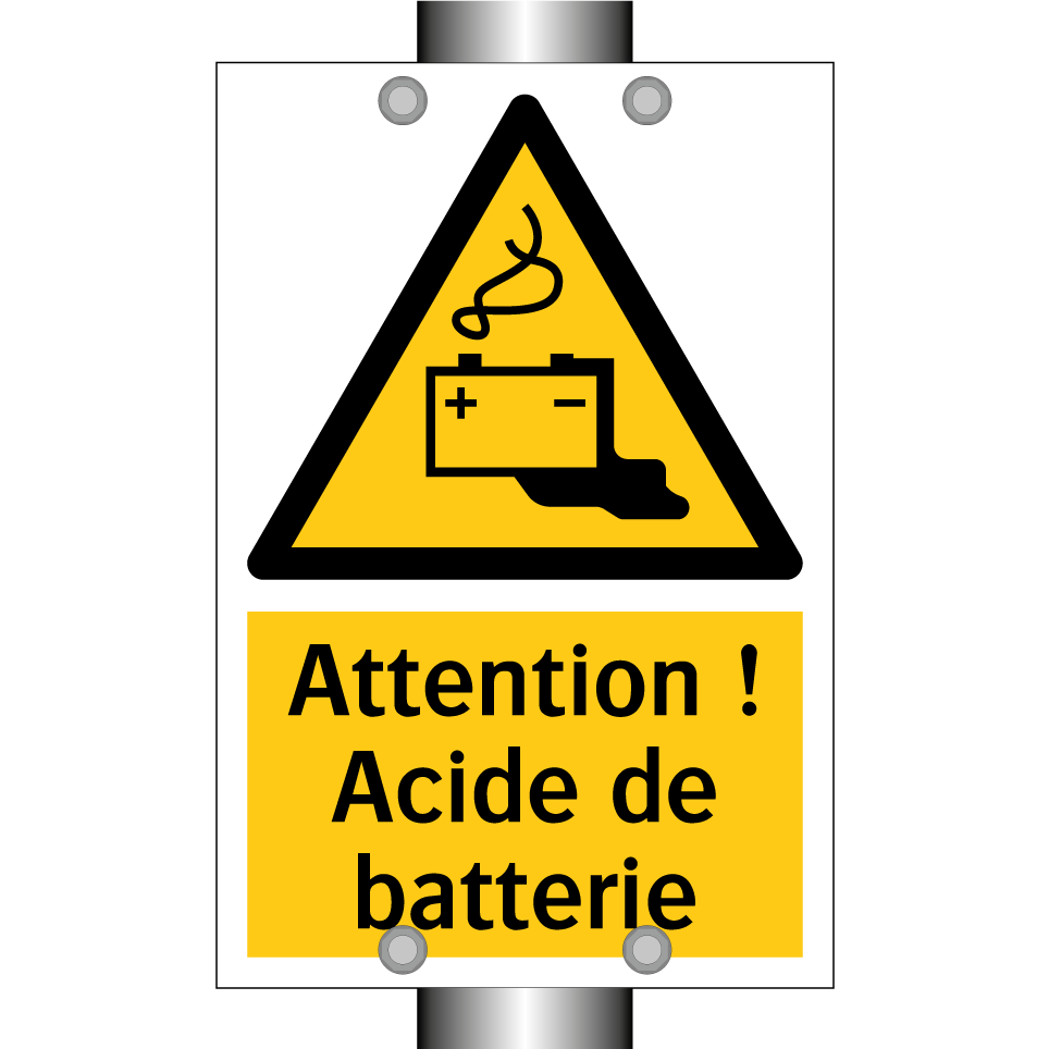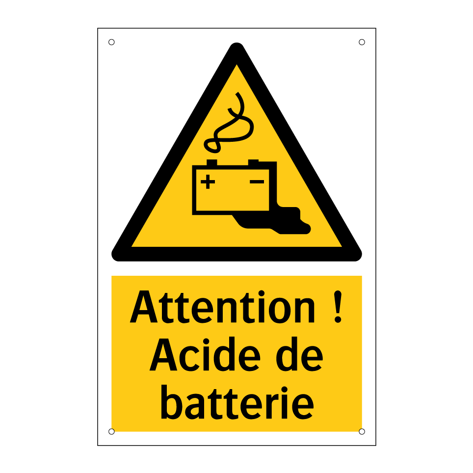 Panneau d'avertissement avec le texte : "Attention ! Acide de batterie"