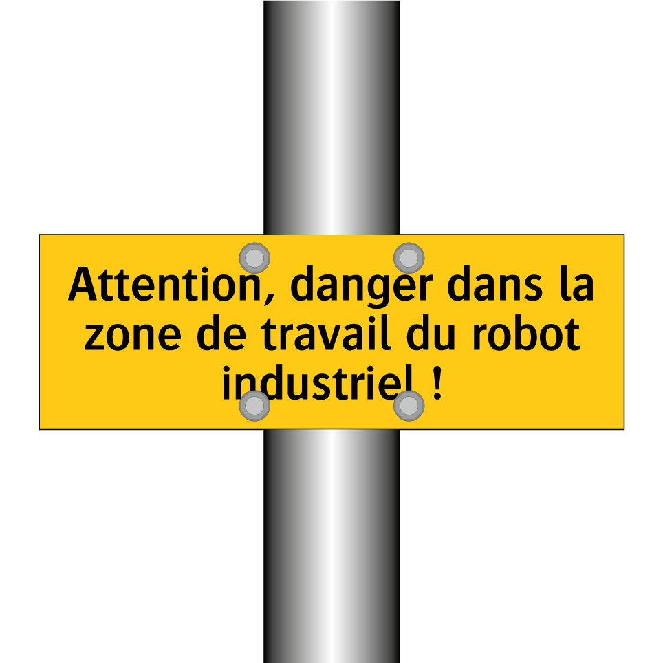 Panneau d'avertissement avec le texte : "Attention, danger dans la zone de travail du robot industriel !"