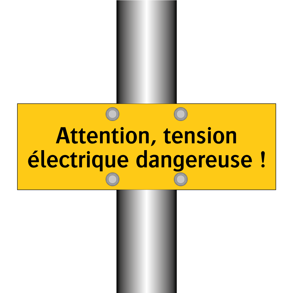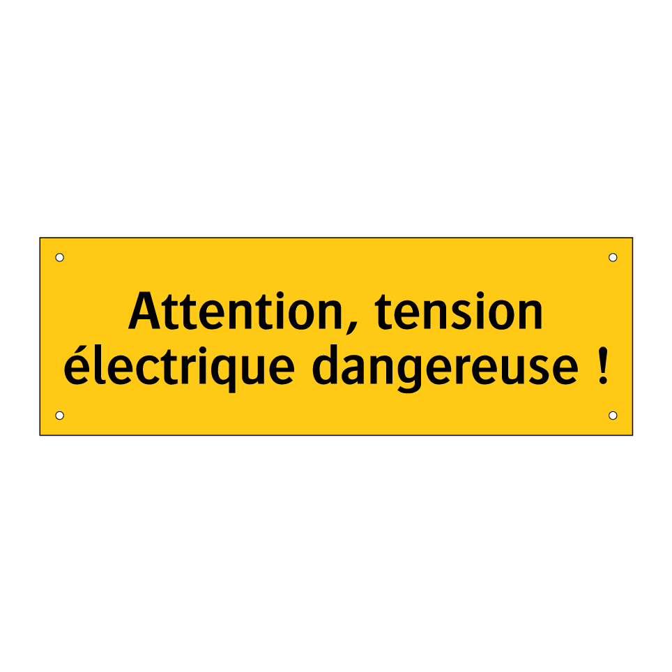 Panneau d'avertissement avec le texte : "Attention, tension électrique dangereuse !"