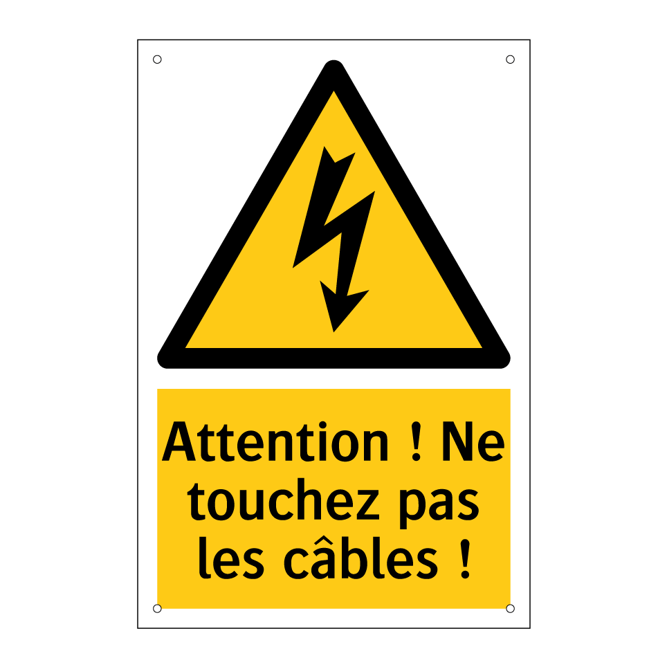 Panneau d'avertissement avec le texte : "Attention ! Ne touchez pas les câbles !"