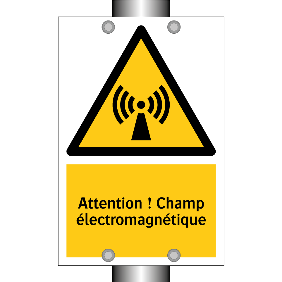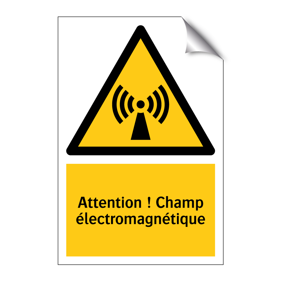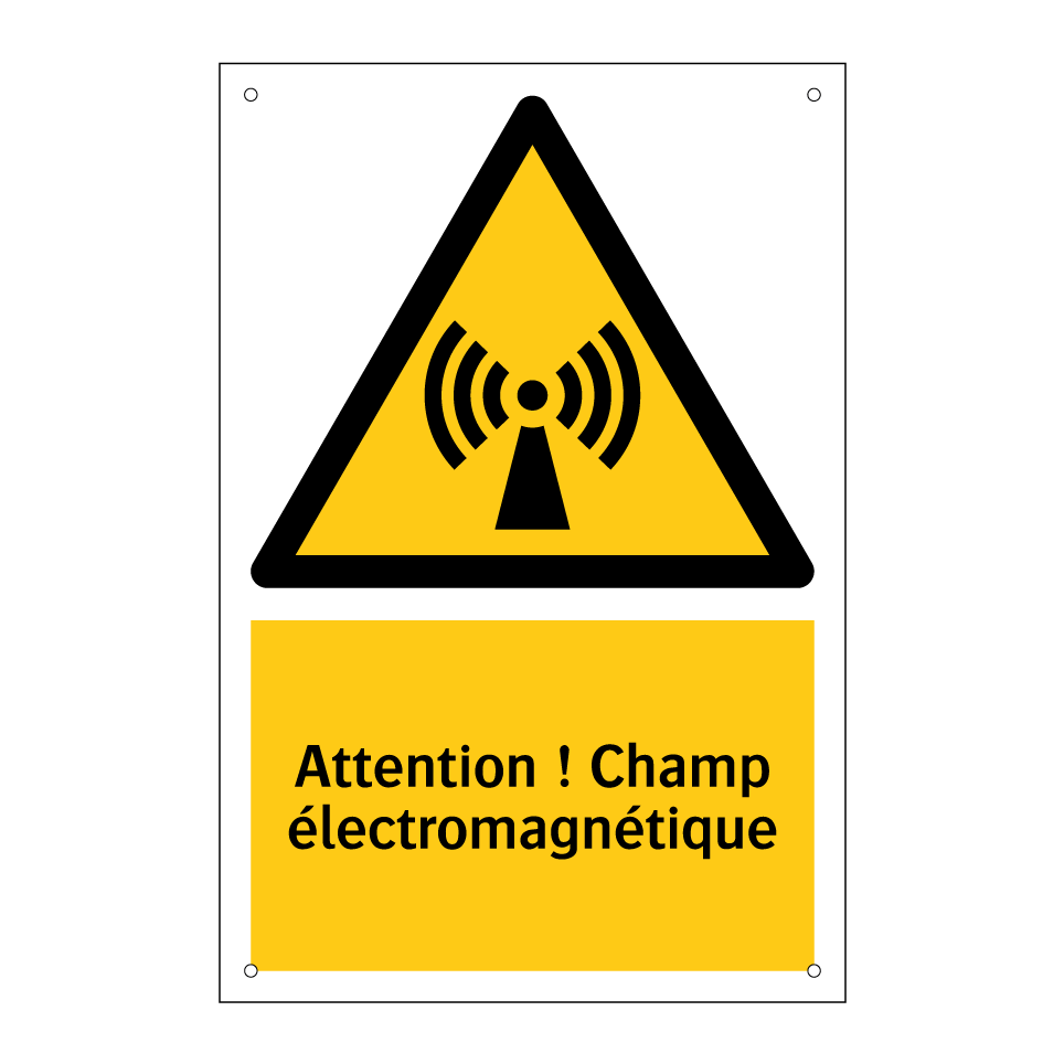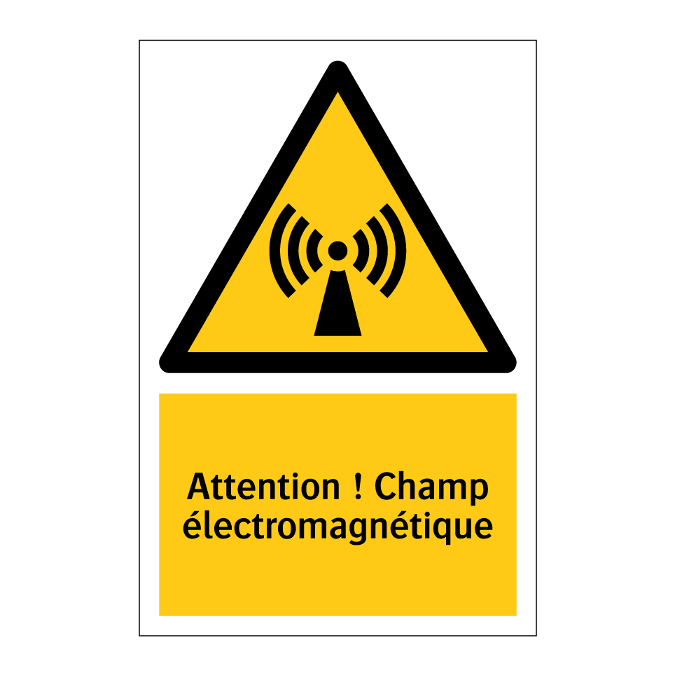 Panneau d'avertissement avec le texte : "Attention ! Champ électromagnétique"