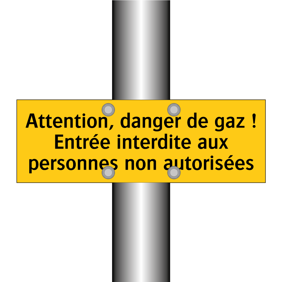 Panneau d'avertissement avec le texte : "Attention, danger de gaz ! Entrée interdite aux personnes non autorisées"