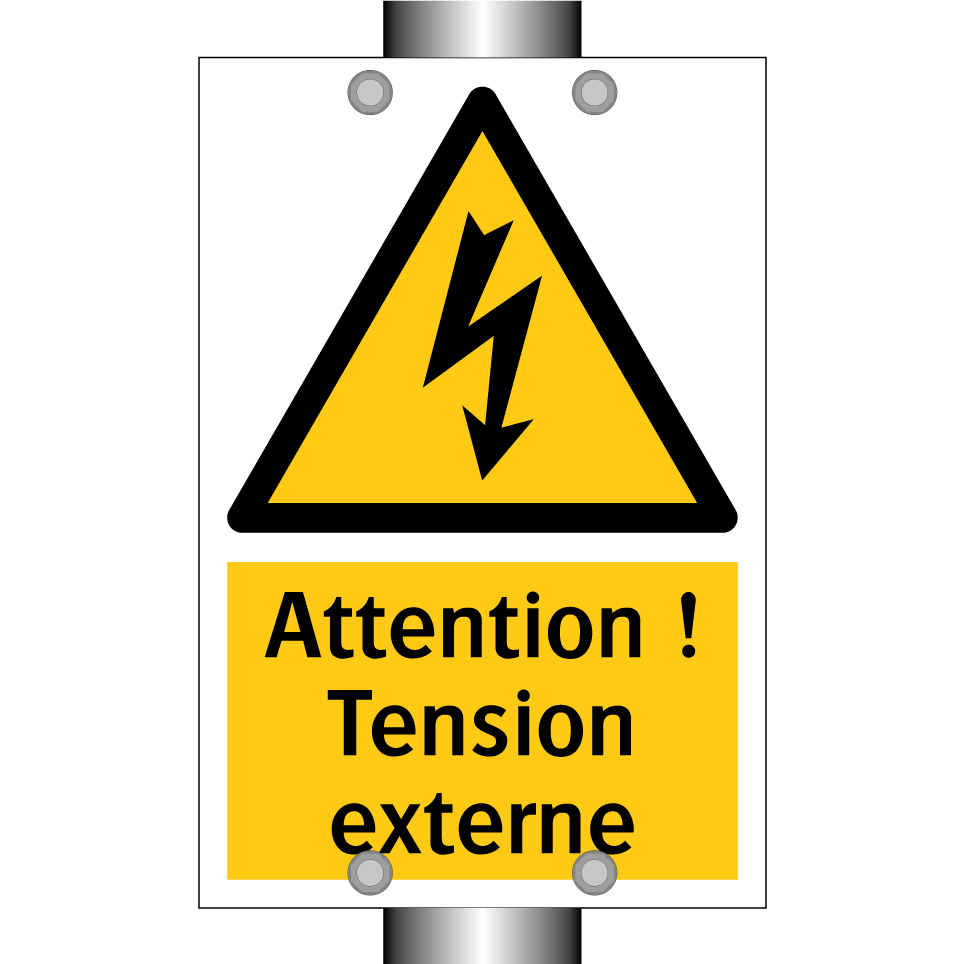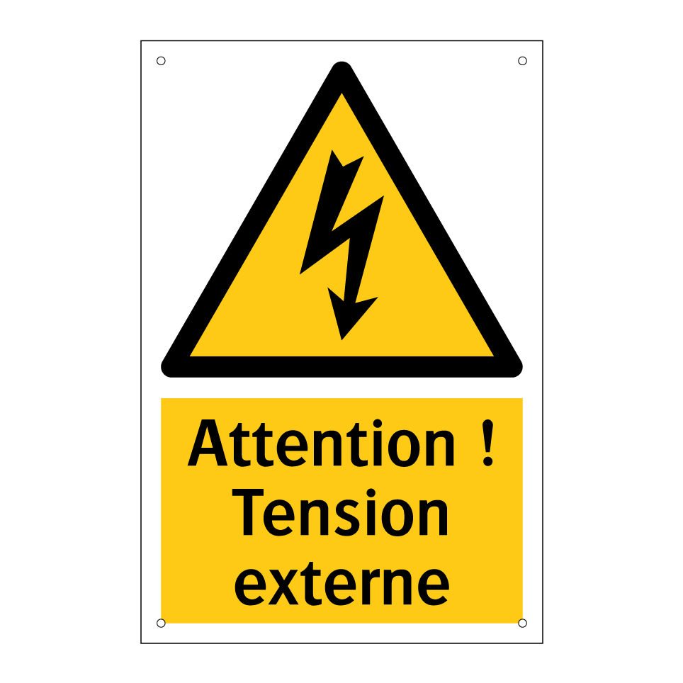 Panneau d'avertissement avec le texte : "Attention ! Tension externe"