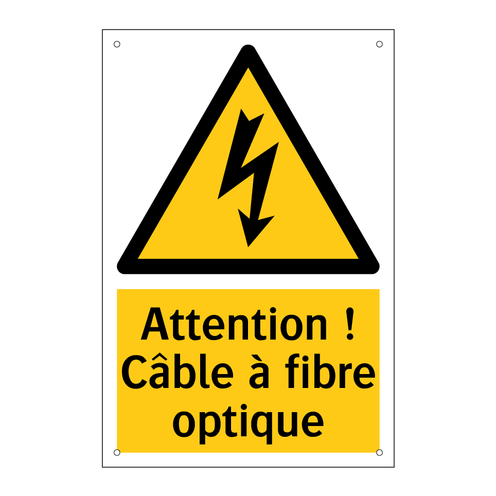 Panneau d'avertissement avec le texte : "Attention ! Câble à fibre optique"