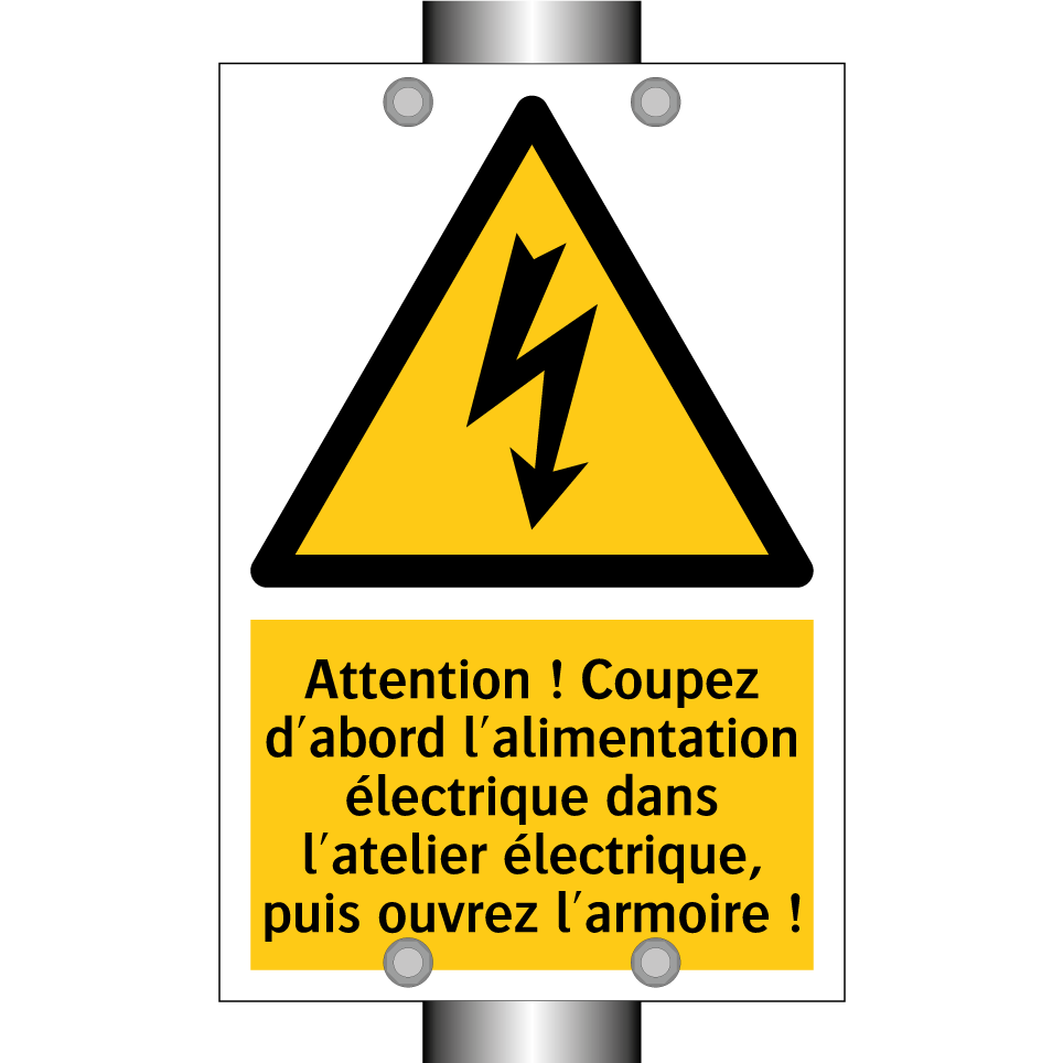 Ce panneau d'avertissement est essentiel pour garantir la sécurité dans les environnements industriels. Conçu pour être placé à l'entrée des ateliers électriques, il rappelle l'importance de couper l'alimentation électrique avant toute intervention. Grâce à sa couleur jaune vive et son texte noir, il attire immédiatement l'attention, minimisant ainsi les risques d'accidents. Idéal pour les usines, les ateliers de maintenance ou tout autre lieu où des équipements électriques sont manipulés, ce panneau joue un rôle crucial dans la prévention des incidents. Assurez-vous que votre espace de travail respecte les normes de sécurité en installant ce panneau à des endroits stratégiques et visibles.
