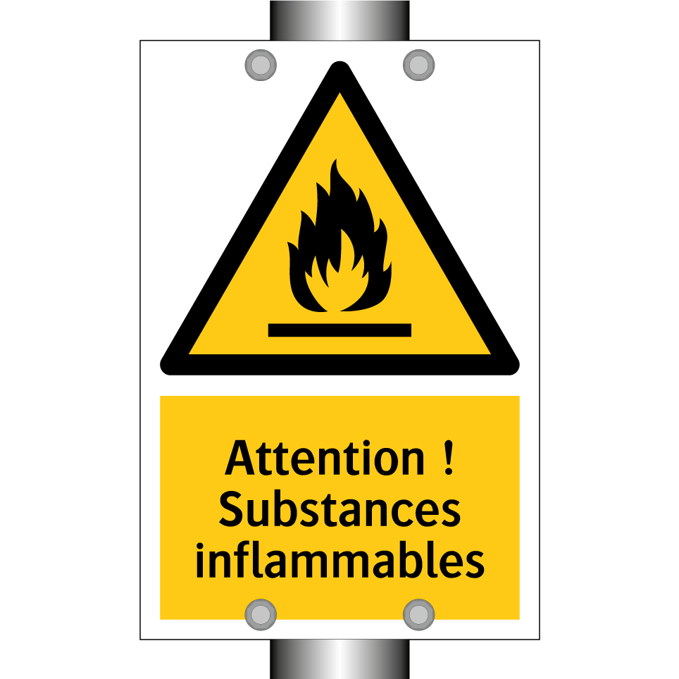 Panneau d'avertissement avec le texte : "Attention ! Substances inflammables"
