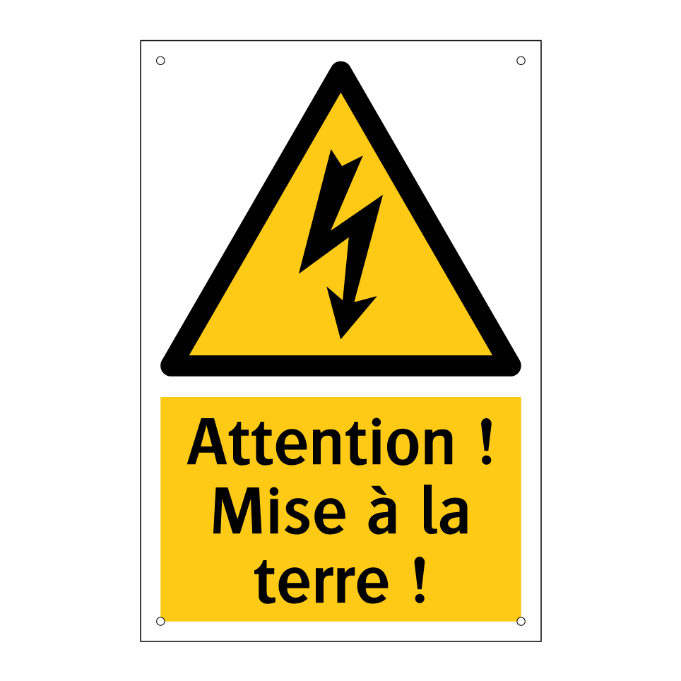 Panneau d'avertissement avec le texte : "Attention ! Mise à la terre !"