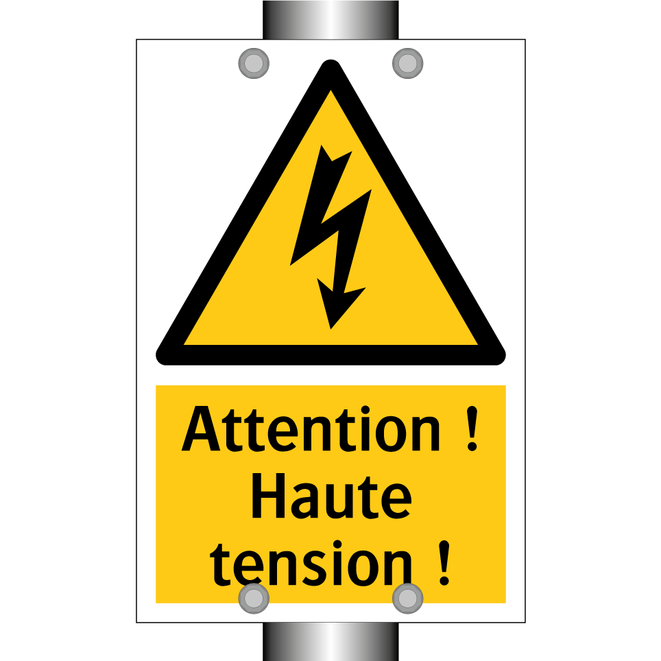 Panneau d'avertissement avec le texte : "Attention ! Haute tension !"