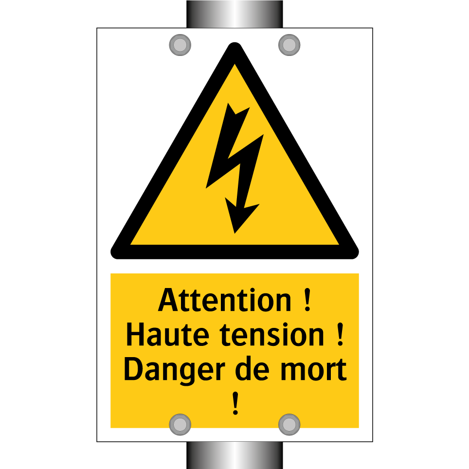 Panneau d'avertissement avec le texte : "Attention ! Haute tension ! Danger de mort !"