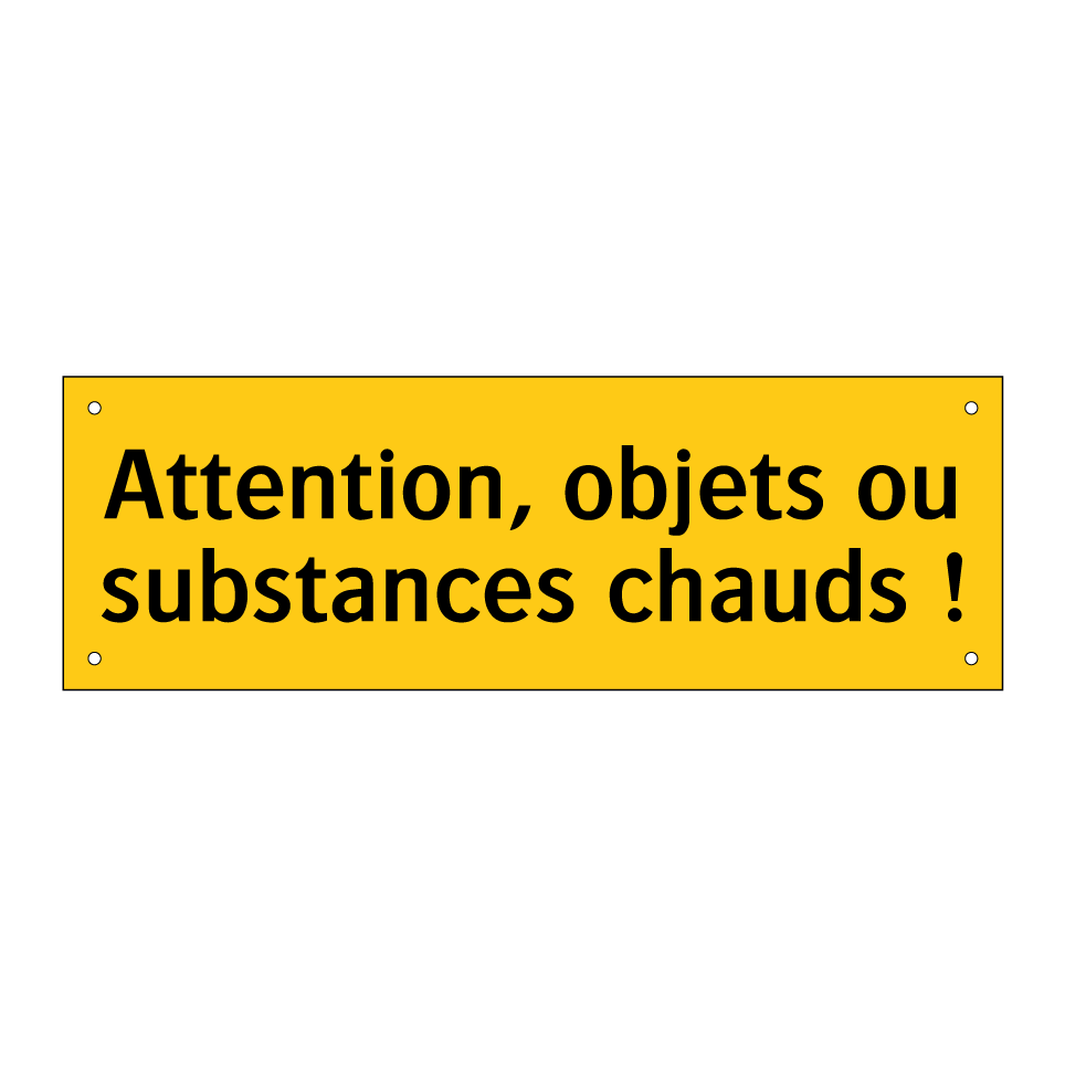 Panneau d'avertissement avec le texte : "Attention, objets ou substances chauds !"