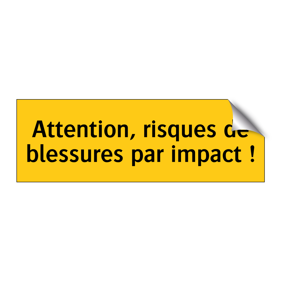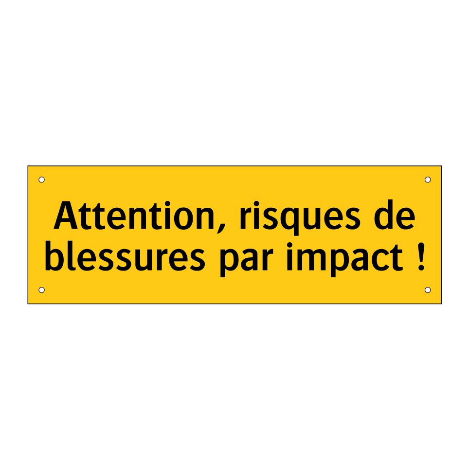 Panneau d'avertissement avec le texte : "Attention, risques de blessures par impact !"