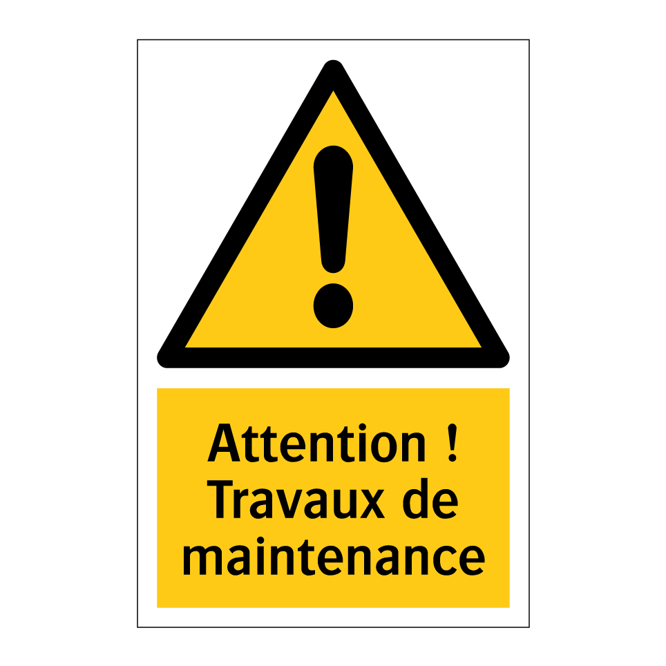 Panneau d'avertissement avec le texte : "Attention ! Travaux de maintenance"