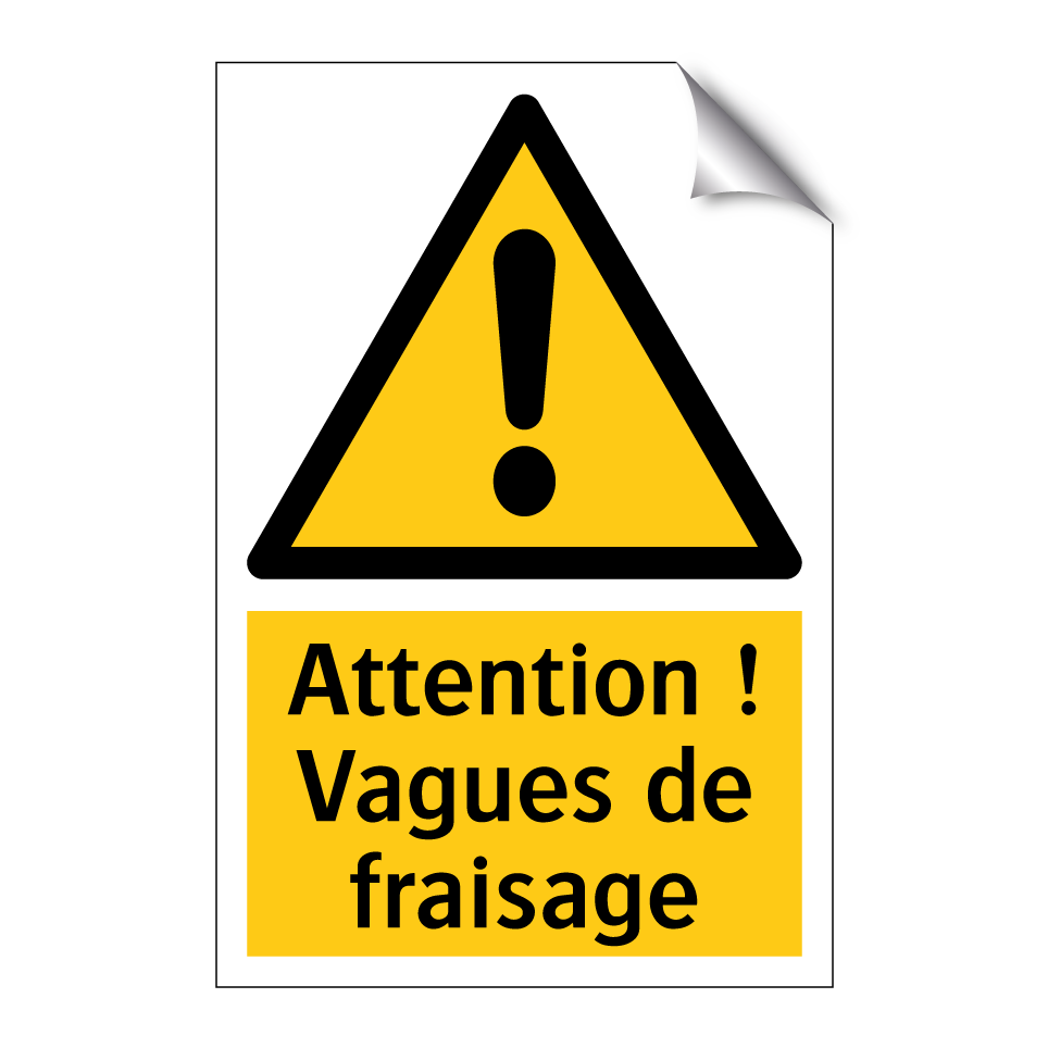 Panneau d'avertissement avec le texte : "Attention ! Vagues de fraisage"