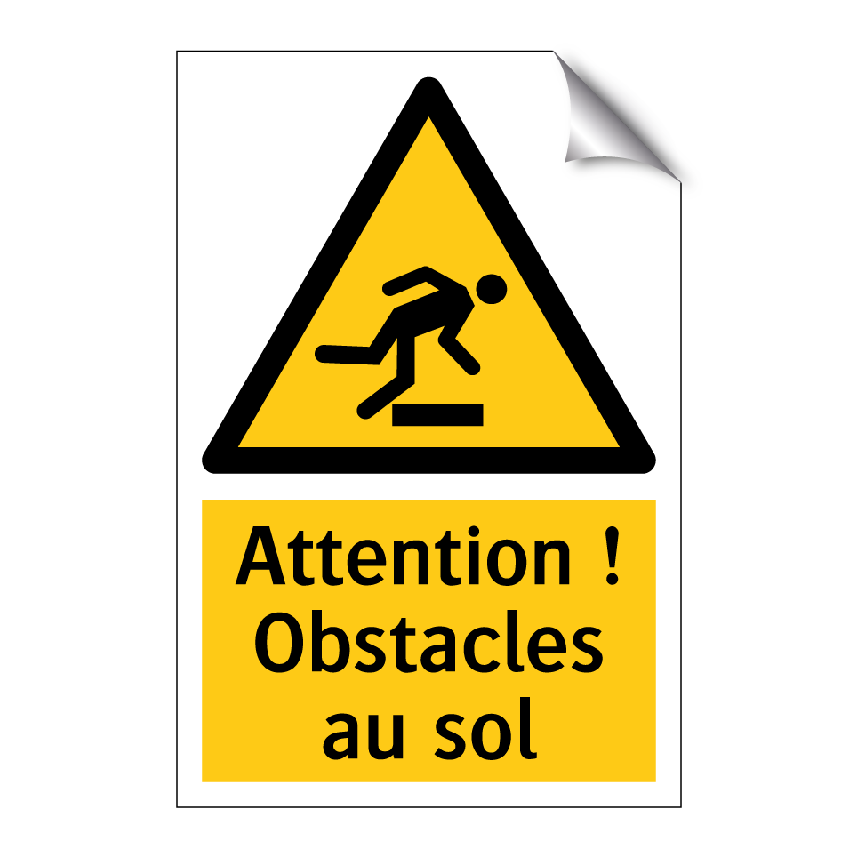 Panneau d'avertissement avec le texte : "Attention ! Obstacles au sol"