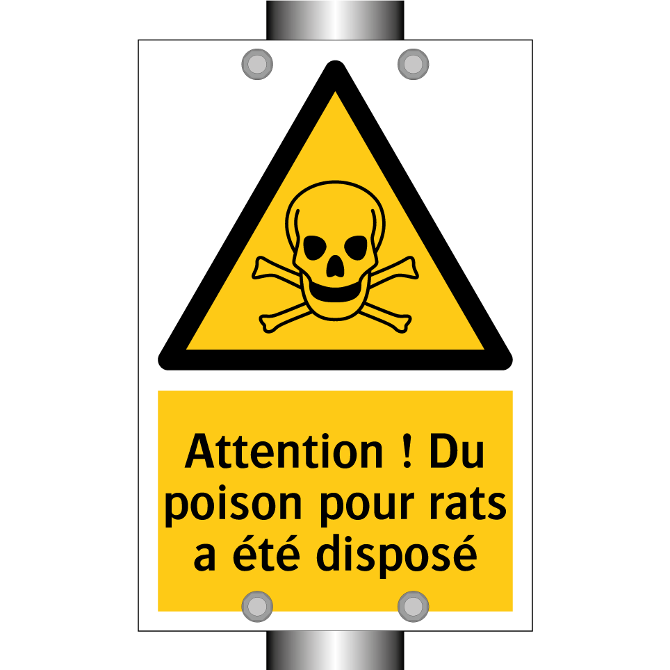 Panneau d'avertissement avec le texte : "Attention ! Du poison pour rats a été disposé"