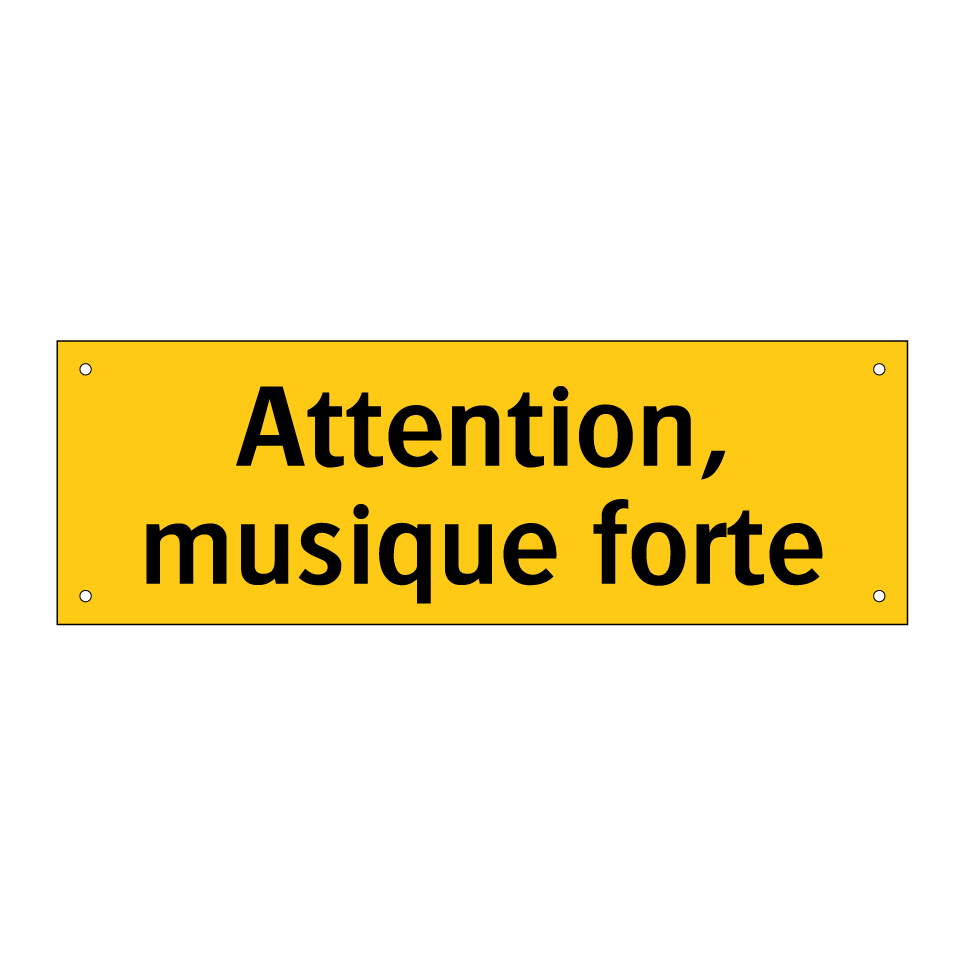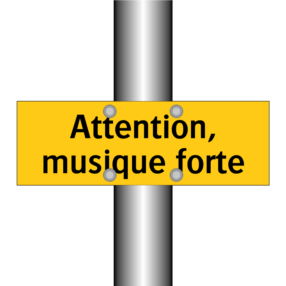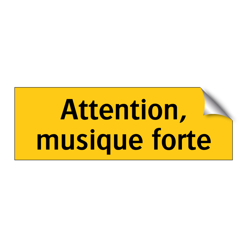 Panneau d'avertissement avec le texte : "Attention, musique forte"