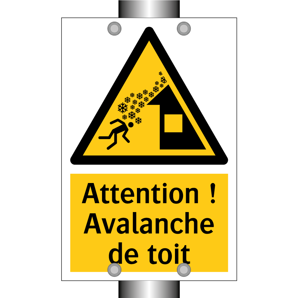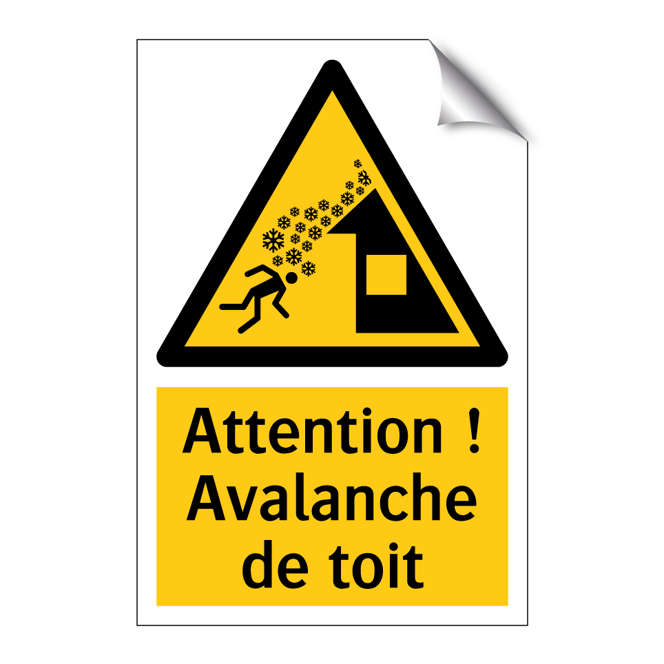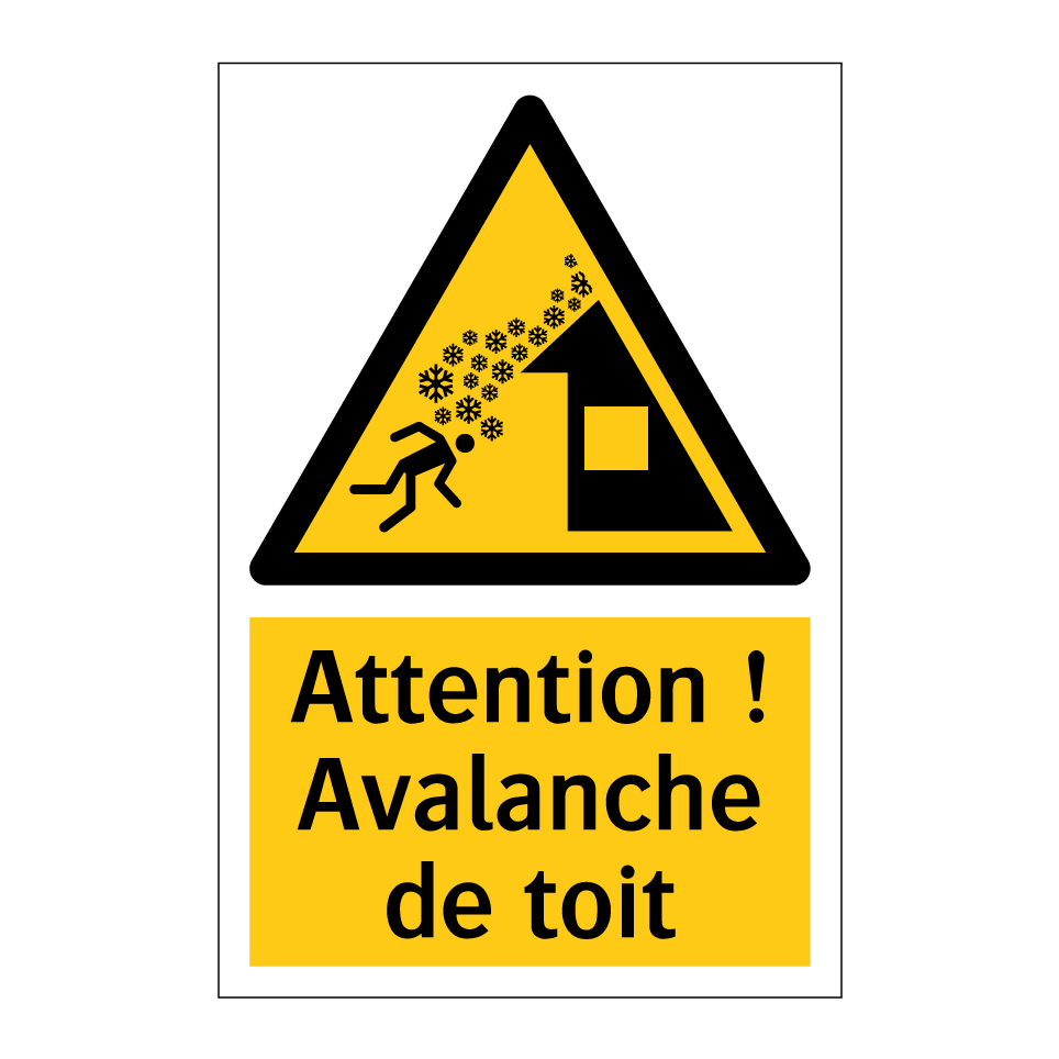 Panneau d'avertissement avec le texte : "Attention ! Avalanche de toit"