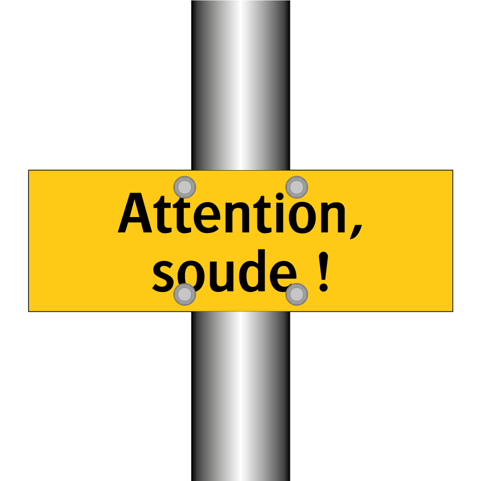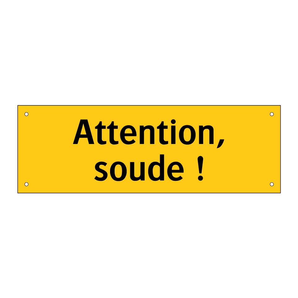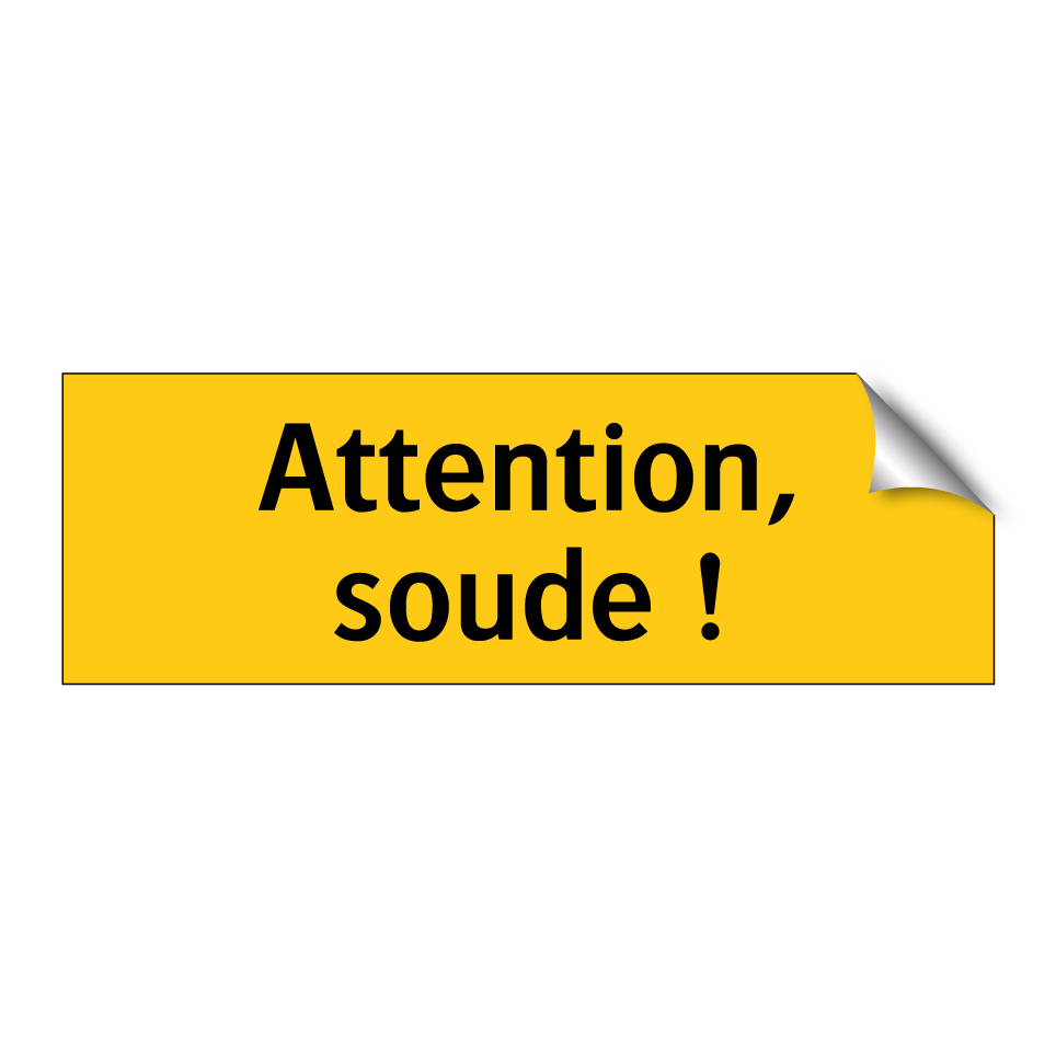 Panneau d'avertissement avec le texte : "Attention, soude !"