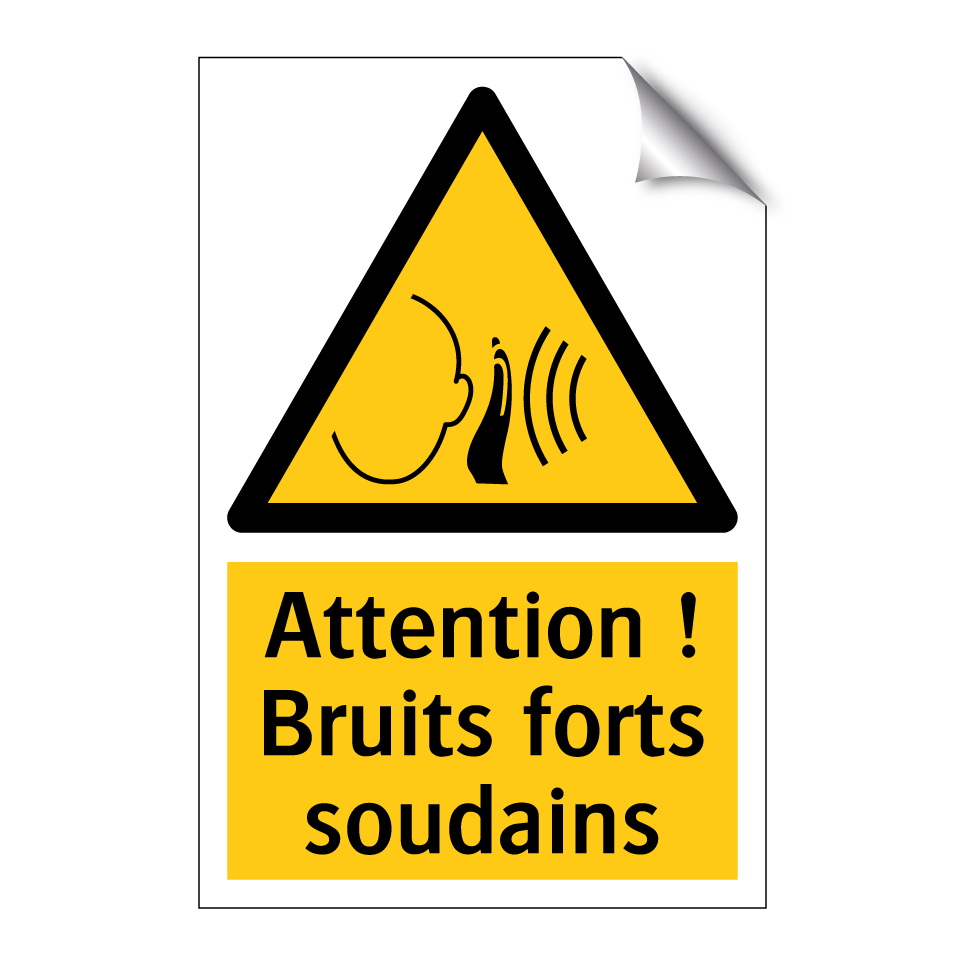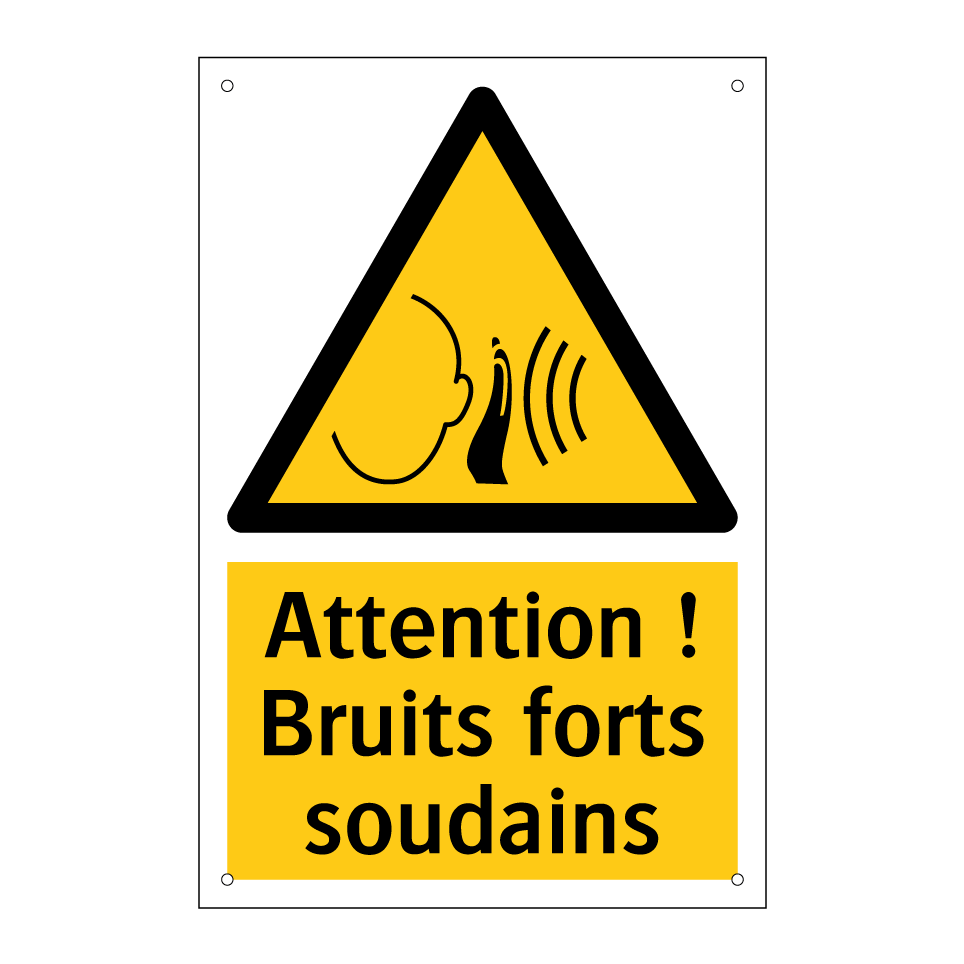 Panneau d'avertissement avec le texte : "Attention ! Bruits forts soudains"