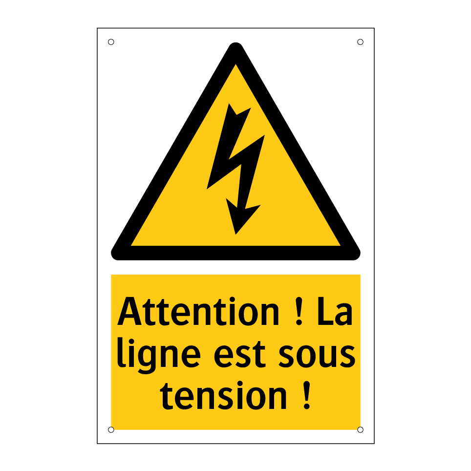 Panneau d'avertissement avec le texte : "Attention ! La ligne est sous tension !"