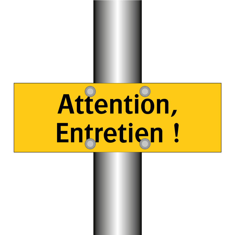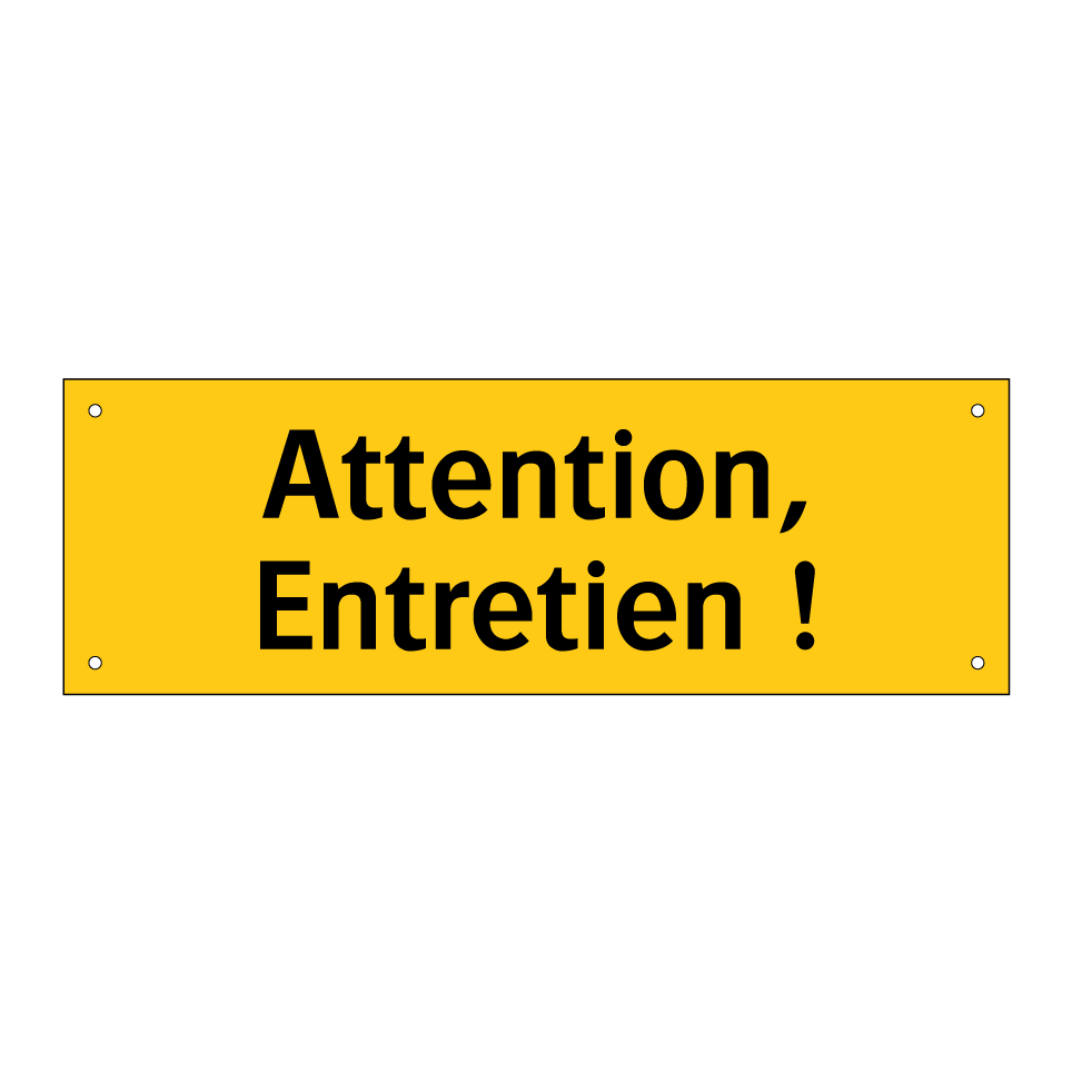 Panneau d'avertissement avec le texte : "Attention, Entretien !"