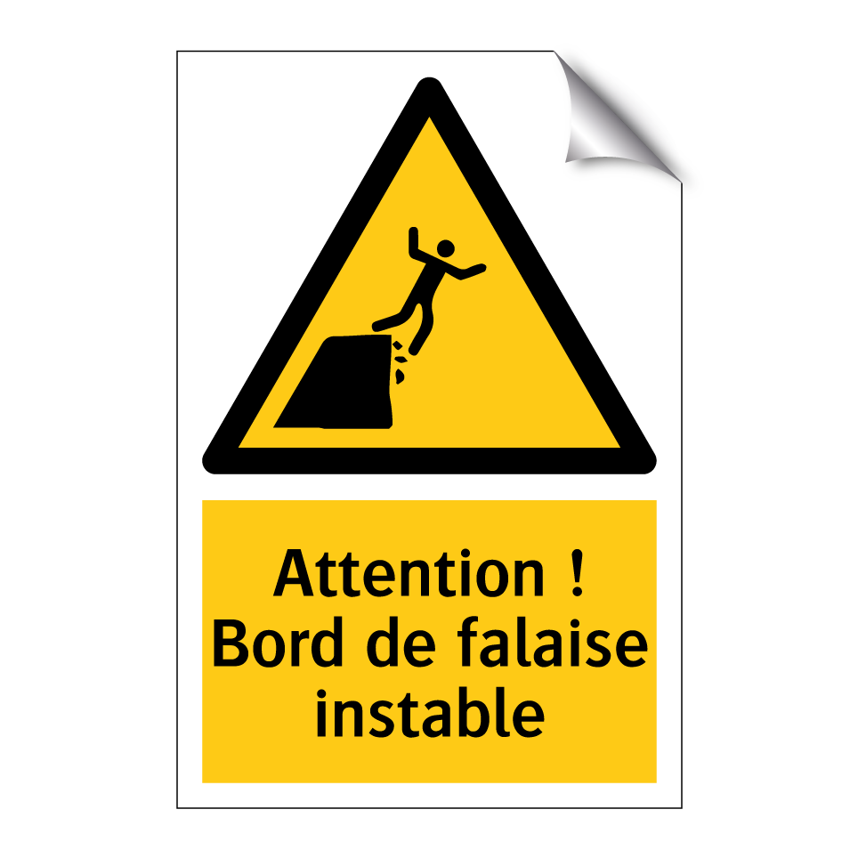 Panneau d'avertissement avec le texte : "Attention ! Bord de falaise instable"