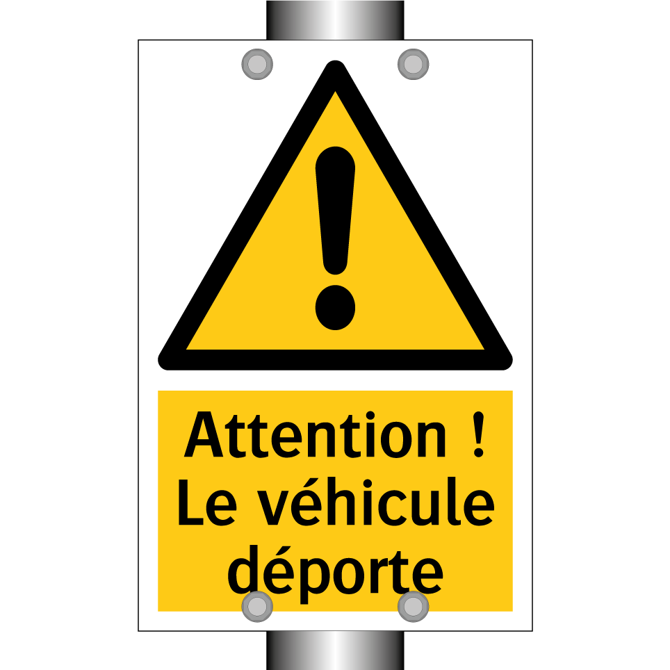 Panneau d'avertissement avec le texte : "Attention ! Le véhicule déporte"