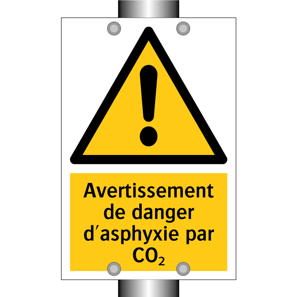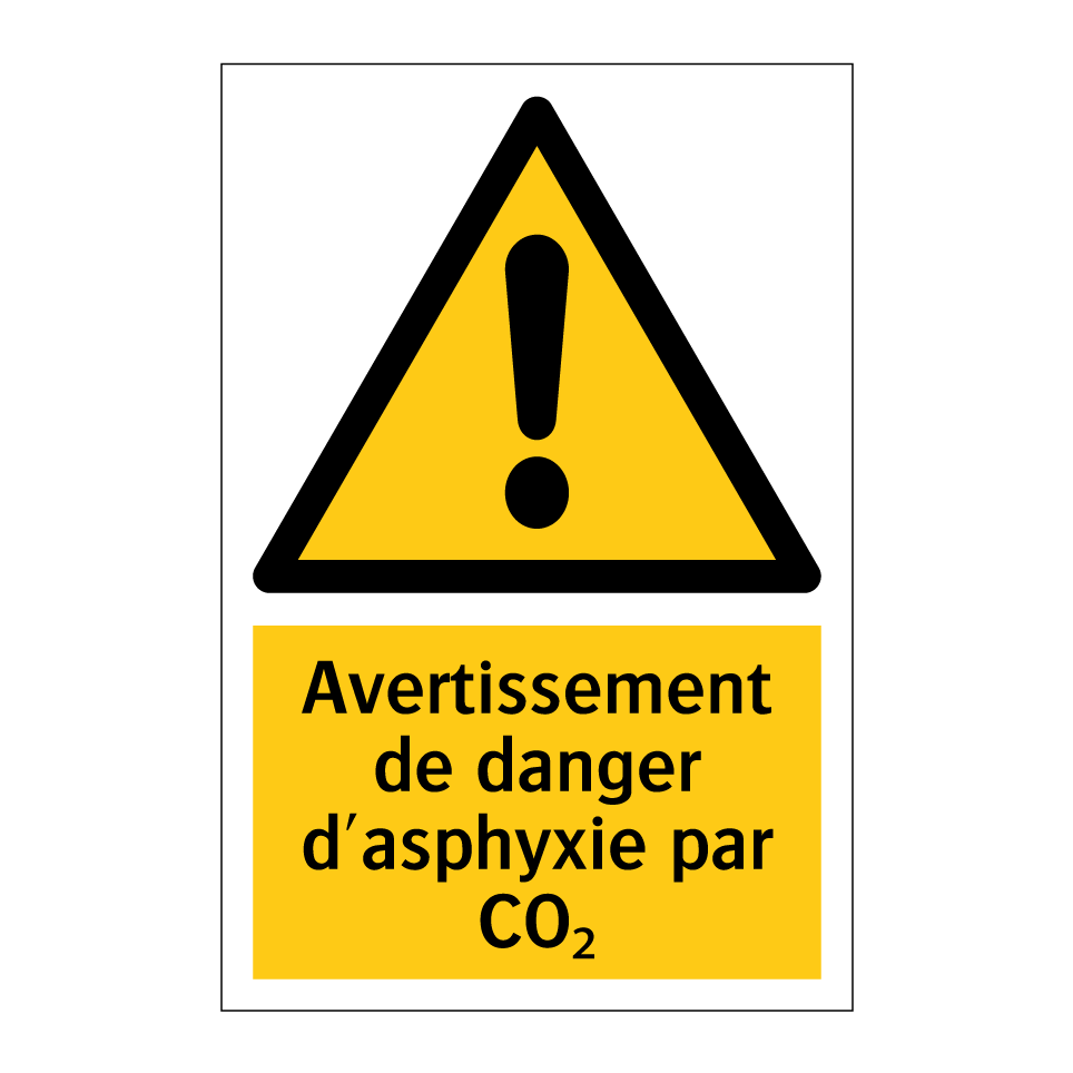 Panneau d'avertissement avec le texte : "Avertissement de danger d'asphyxie par CO₂"