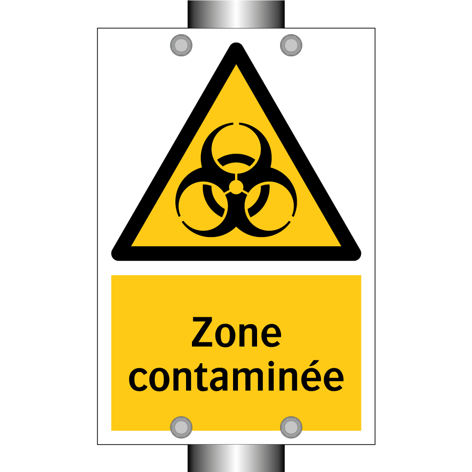 Panneau d'avertissement avec le texte : "Zone contaminée"