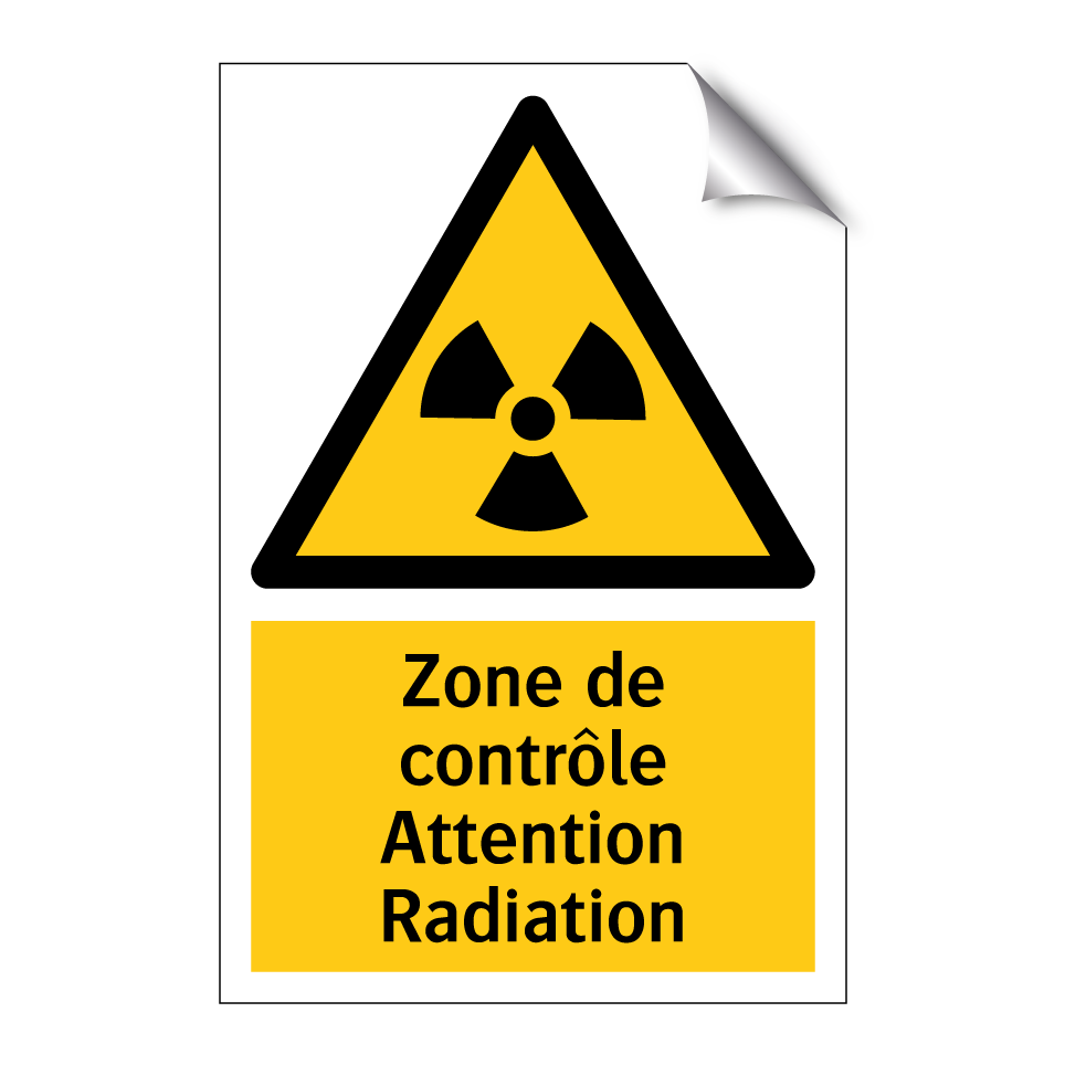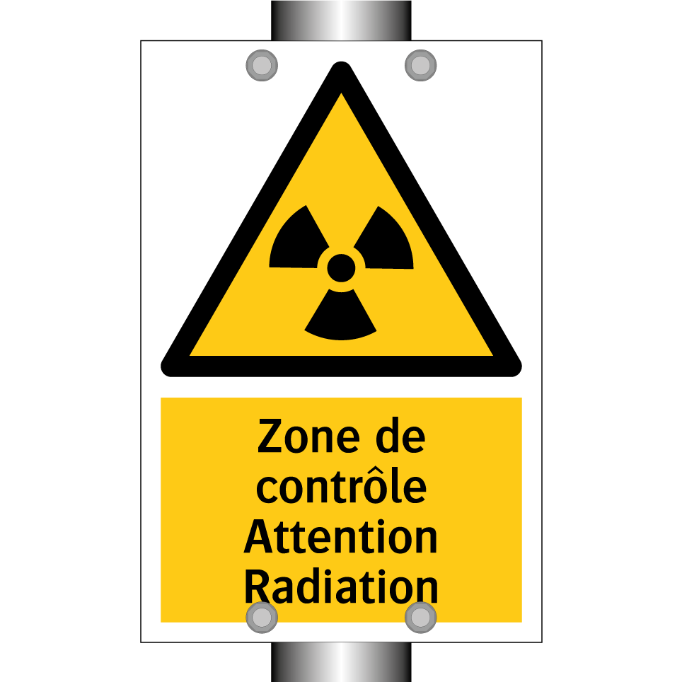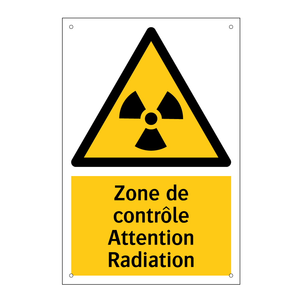 Panneau d'avertissement avec le texte : "Zone de contrôle Attention Radiation"