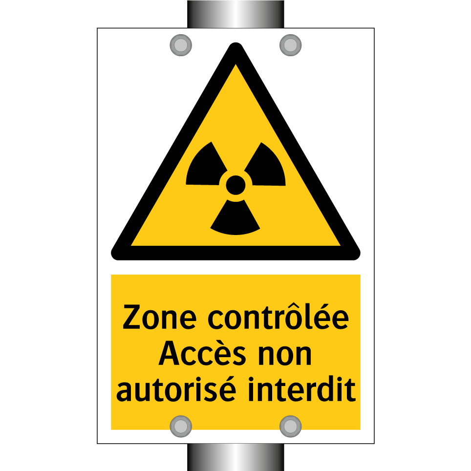 Panneau d'avertissement avec le texte : "Zone contrôlée Accès non autorisé interdit"