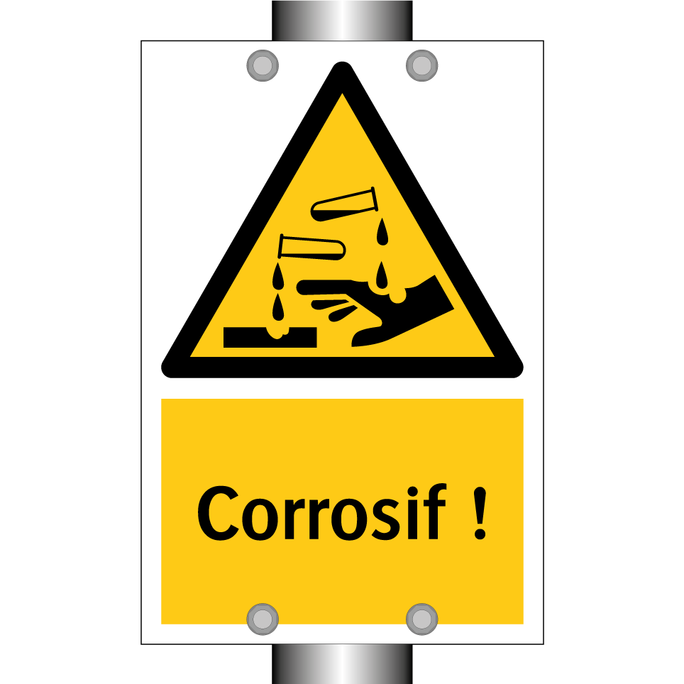 Panneau d'avertissement avec le texte : "Corrosif !"
