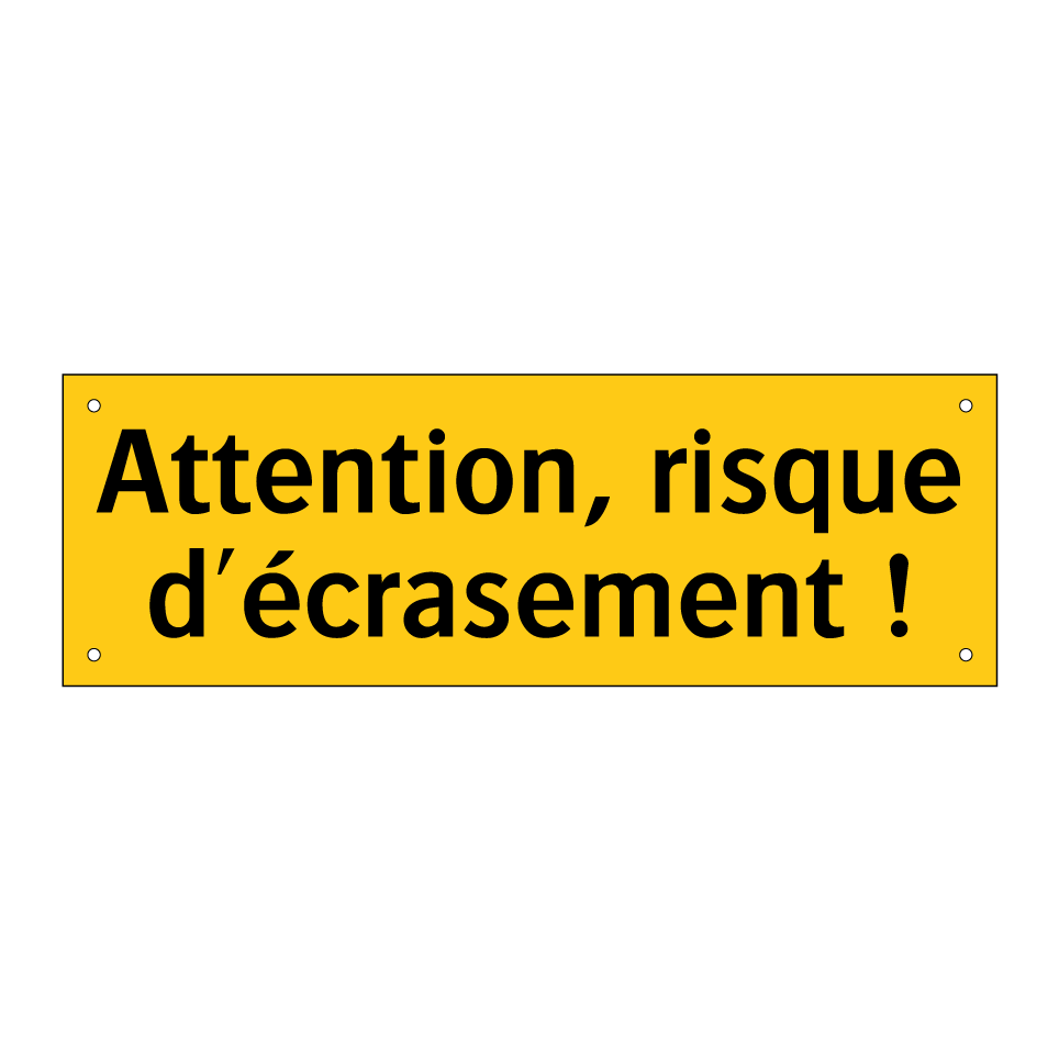Panneau d'avertissement avec le texte : "Attention, risque d'écrasement !"