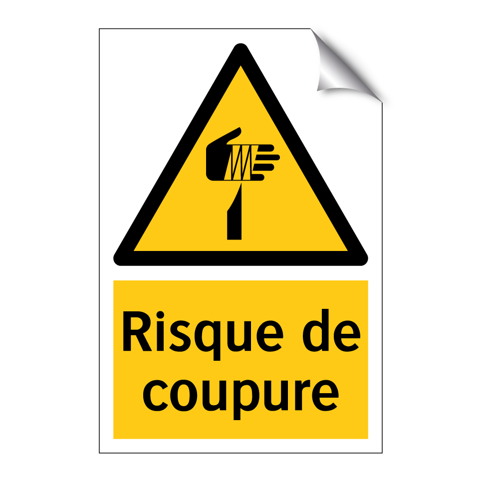 Panneau d'avertissement avec le texte : "Risque de coupure"