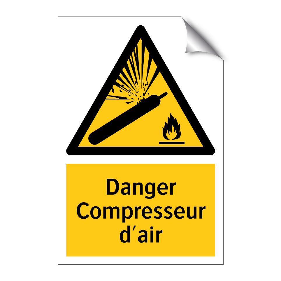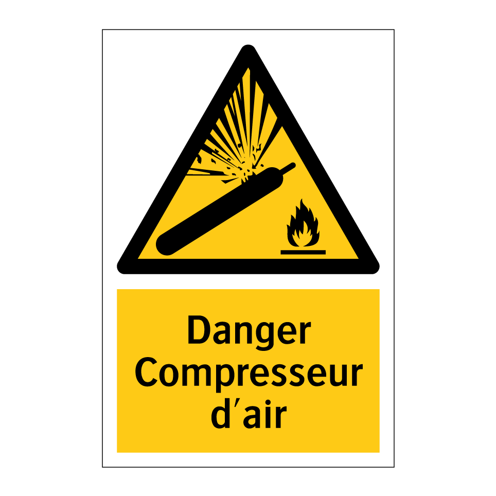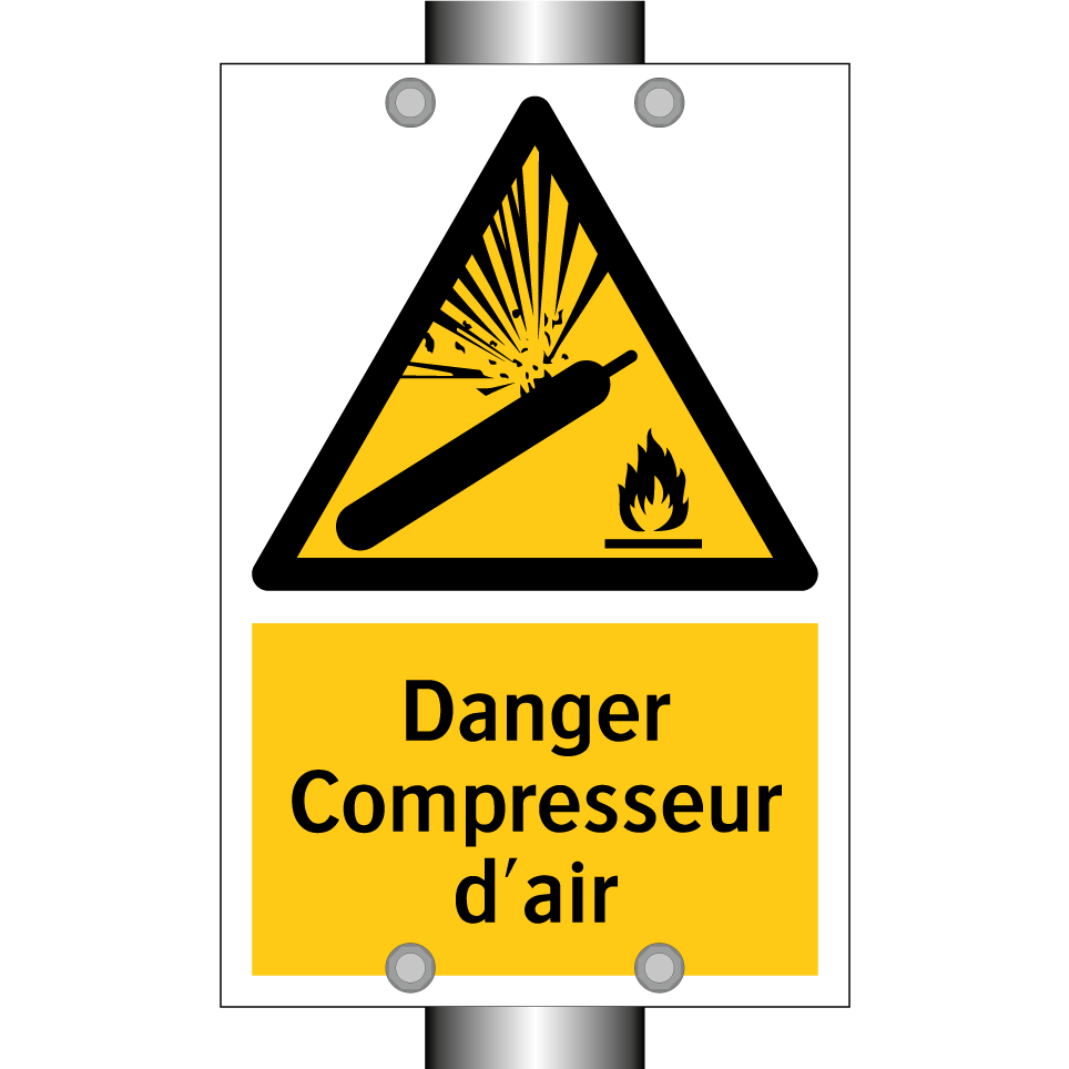 Panneau d'avertissement avec le texte : "Danger Compresseur d'air"