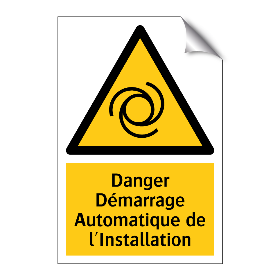 Panneau d'avertissement avec le texte : "Danger Démarrage Automatique de l'Installation"