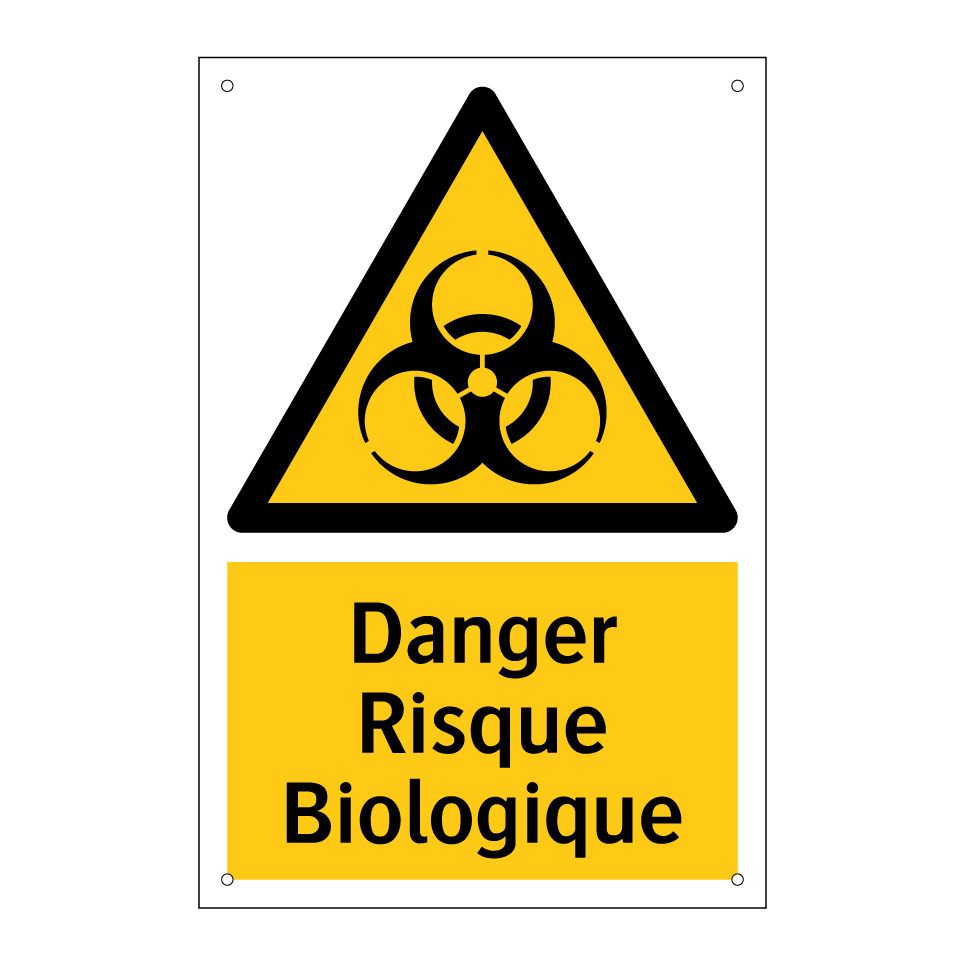 Panneau d'avertissement avec le texte : "Danger Risque Biologique"