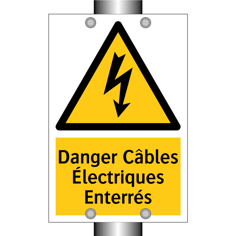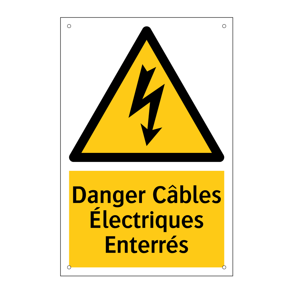 Panneau d'avertissement avec le texte : "Danger Câbles Électriques Enterrés"