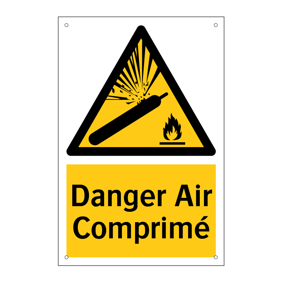 Panneau d'avertissement avec le texte : "Danger Air Comprimé"