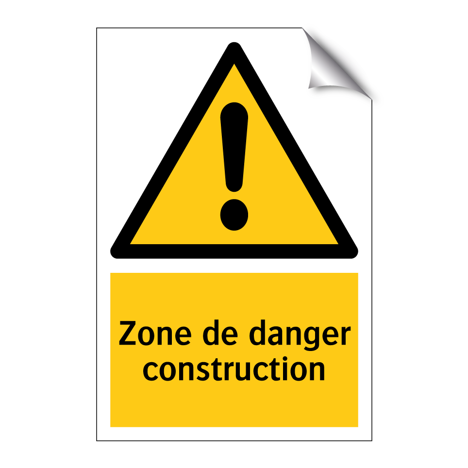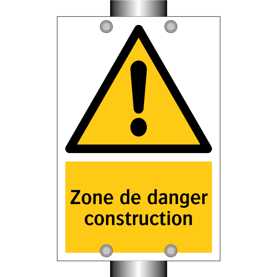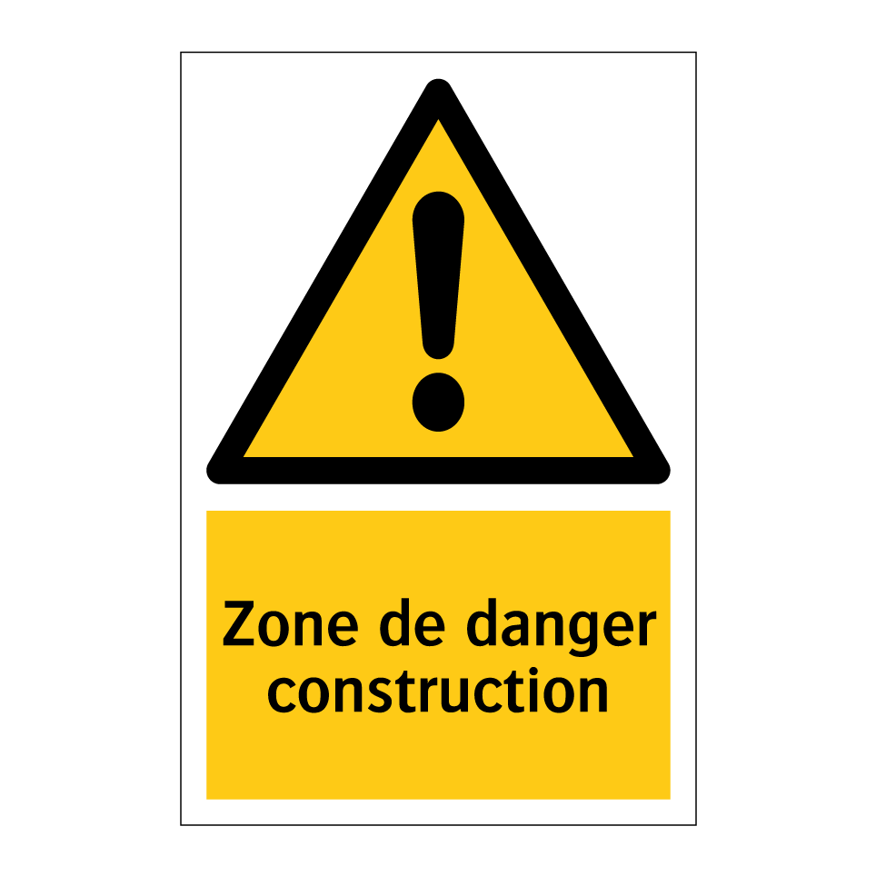 Panneau d'avertissement avec le texte : "Zone de danger construction"