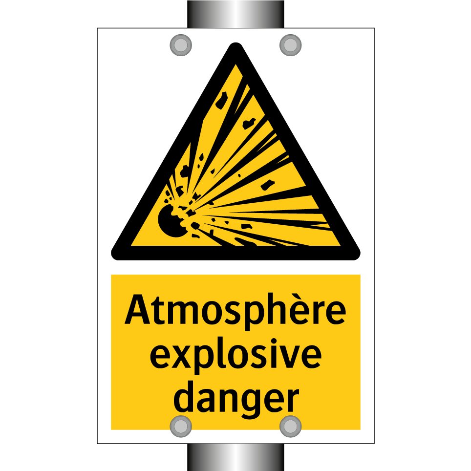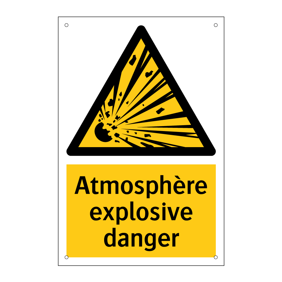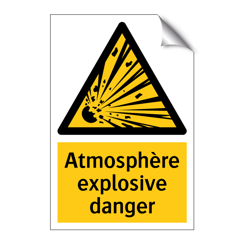 Panneau d'avertissement avec le texte : "Atmosphère explosive danger"