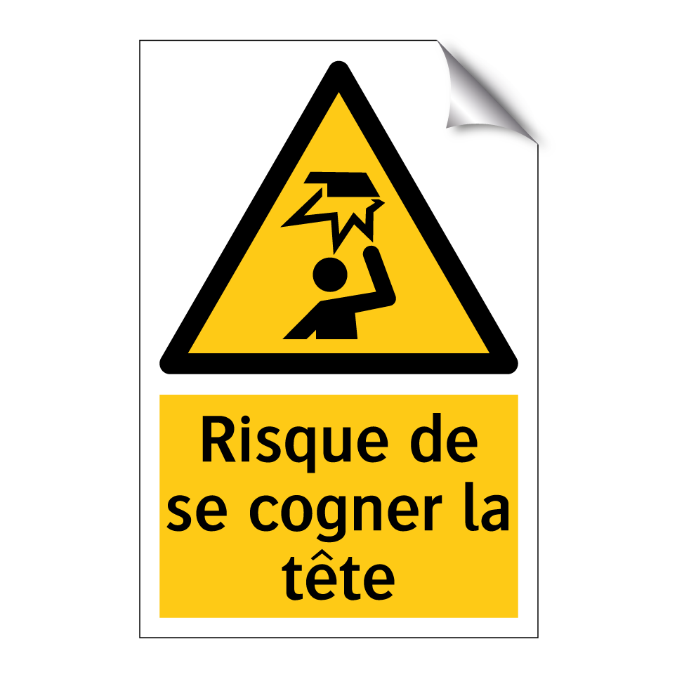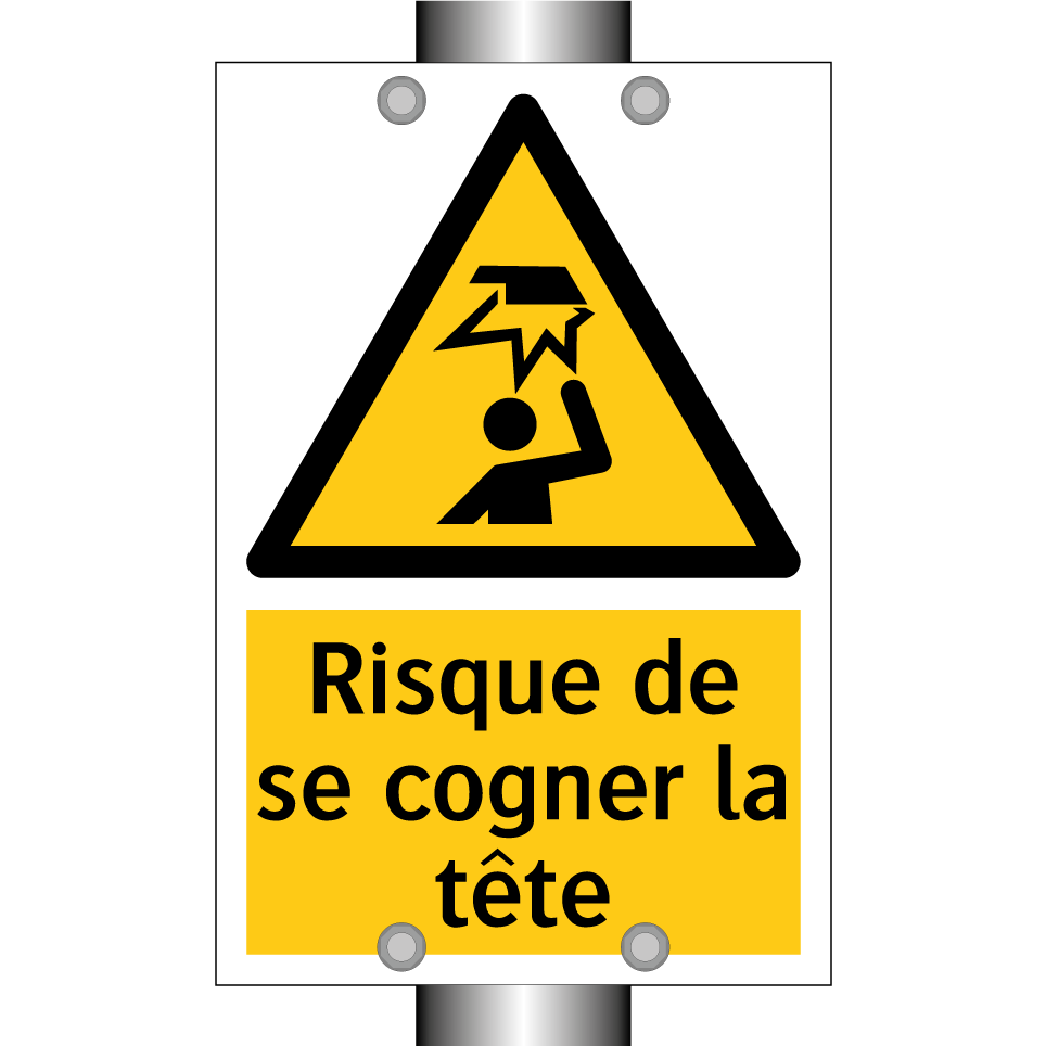 Panneau d'avertissement avec le texte : "Risque de se cogner la tête"