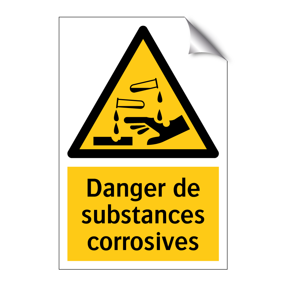 Panneau d'avertissement avec le texte : "Danger de substances corrosives"