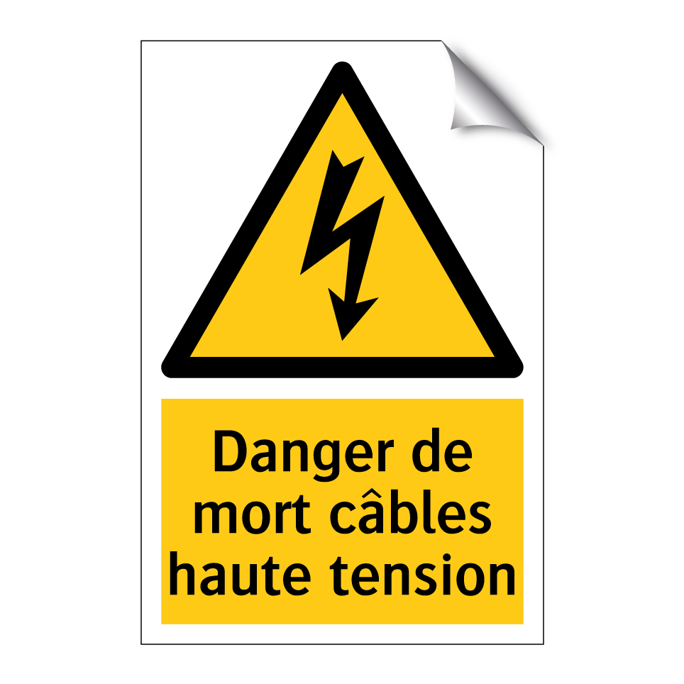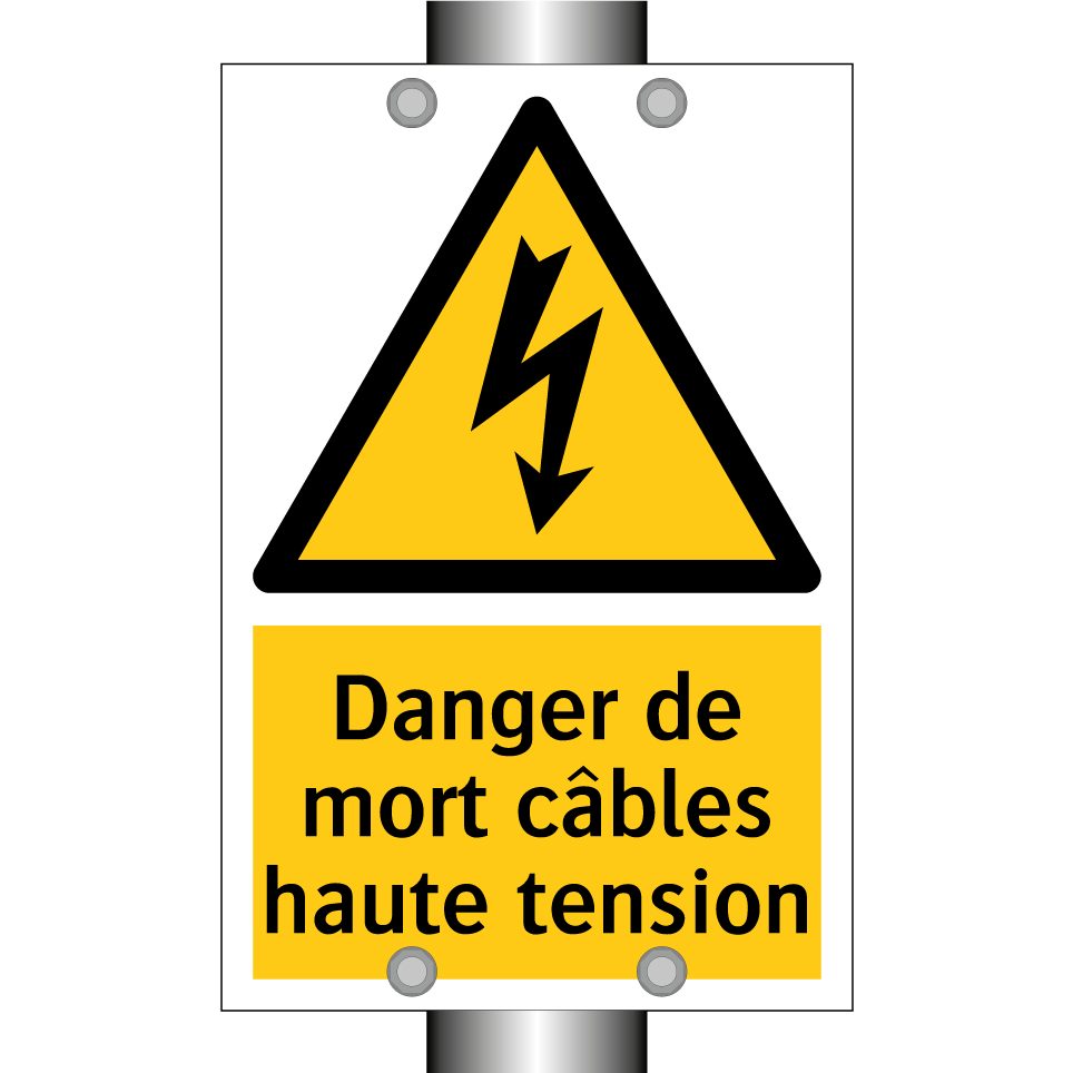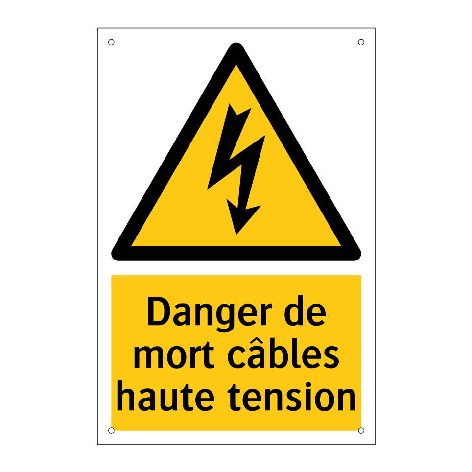 Panneau d'avertissement avec le texte : "Danger de mort câbles haute tension"