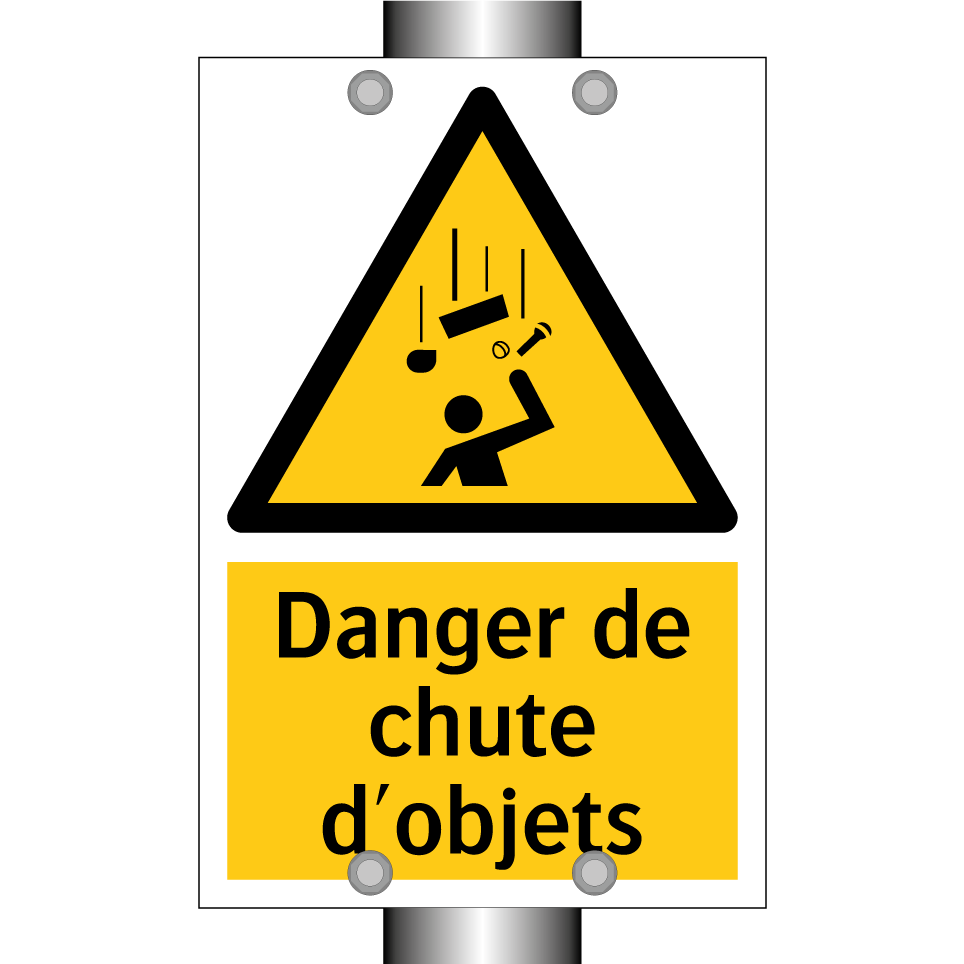 Panneau d'avertissement avec le texte : "Danger de chute d'objets"