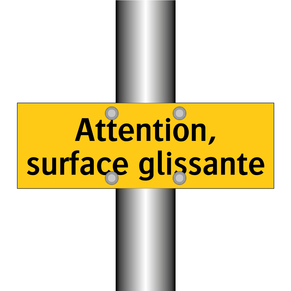 Panneau d'avertissement avec le texte : "Attention, surface glissante"