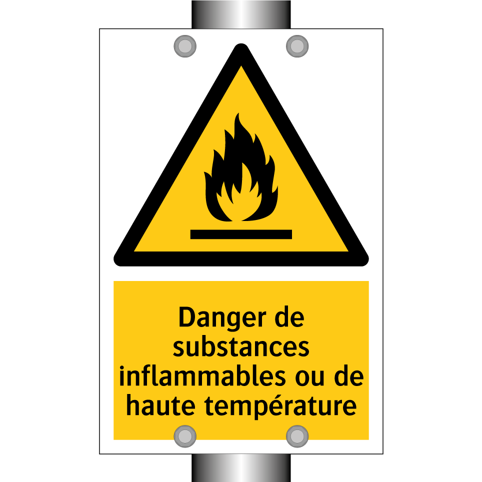 Panneau d'avertissement avec le texte : "Danger de substances inflammables ou de haute température"