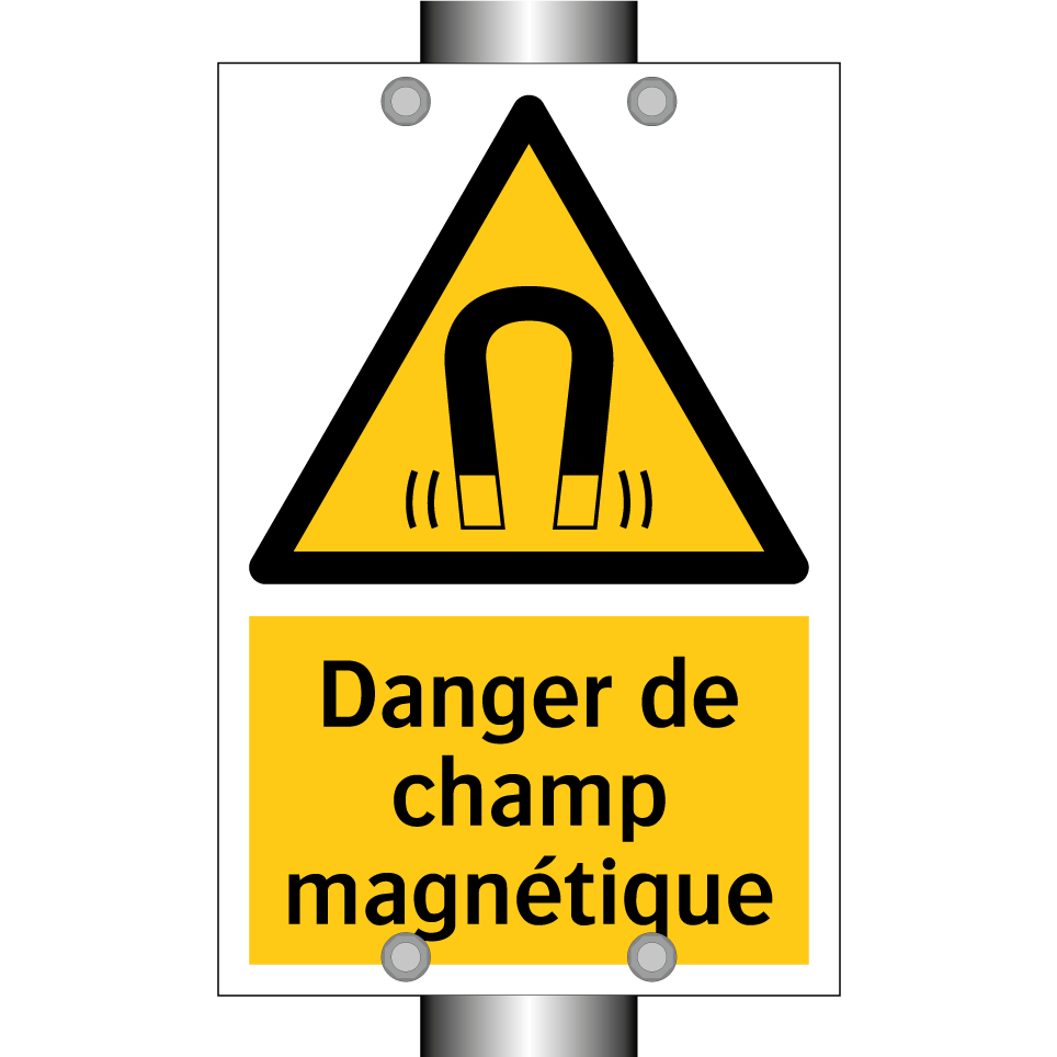 Panneau d'avertissement avec le texte : "Danger de champ magnétique"