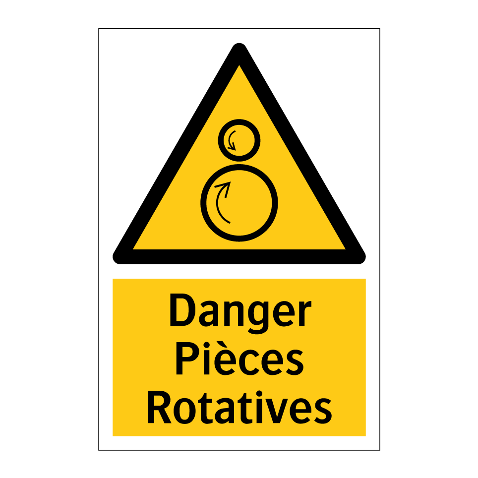 Panneau d'avertissement avec le texte : "Danger Pièces Rotatives"